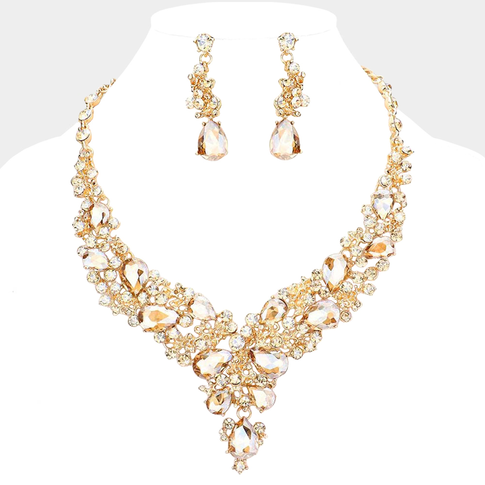 Oblique Rhinestone Pave Teardrop Detail Collar Necklace