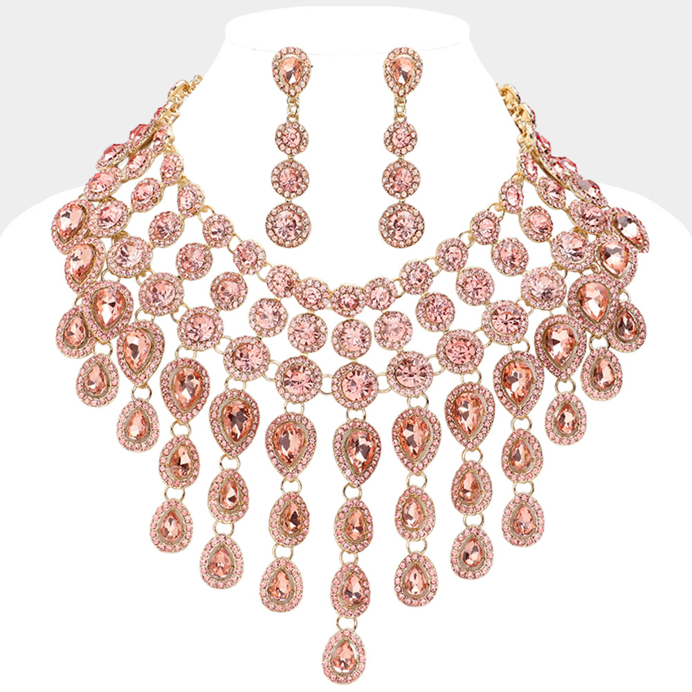 Round Teardrop Stone Cluster Evening Bib Necklace