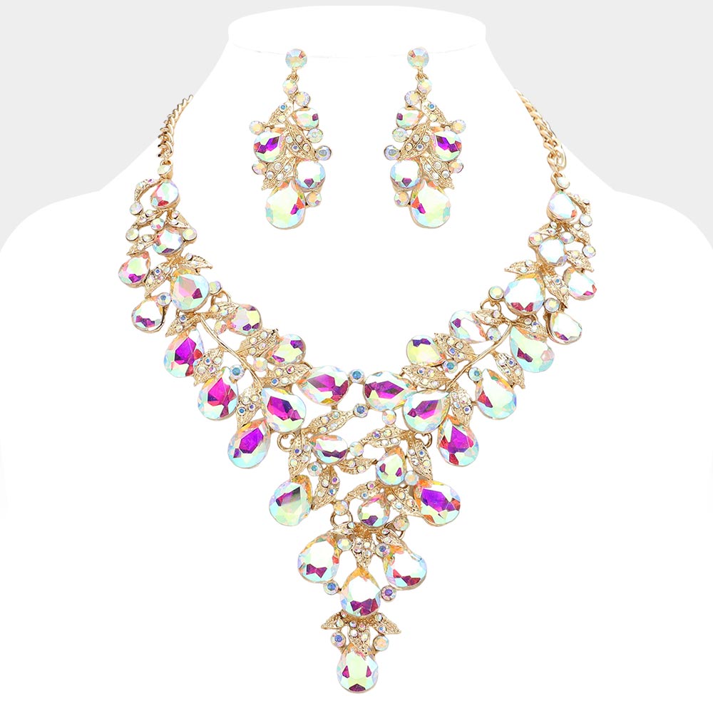 Teardrop Glass Stone Cluster Embellished Evening Bib Necklace