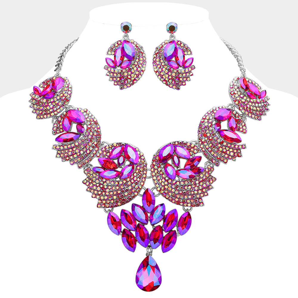 Teardrop Marquise Stone Embellished Rhinestone Paved Abstract Bib Statement Necklace
