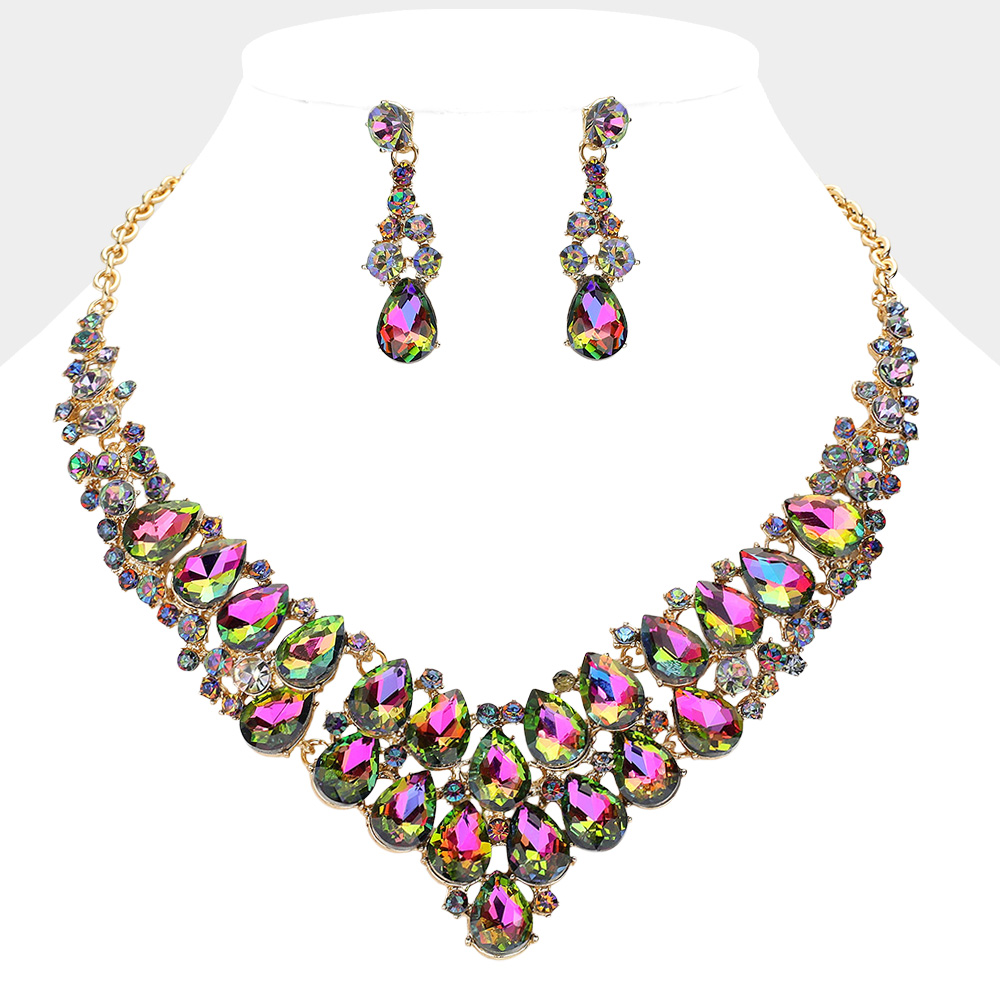 Teardrop Stone Cluster Collar Evening Necklace