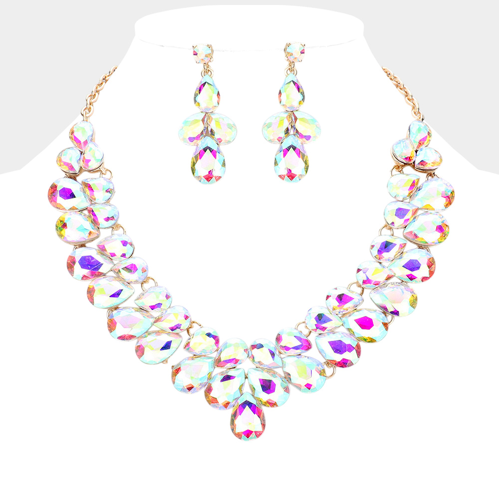 Pear Crystal Accented Rhinestone Necklace Jewelry Set