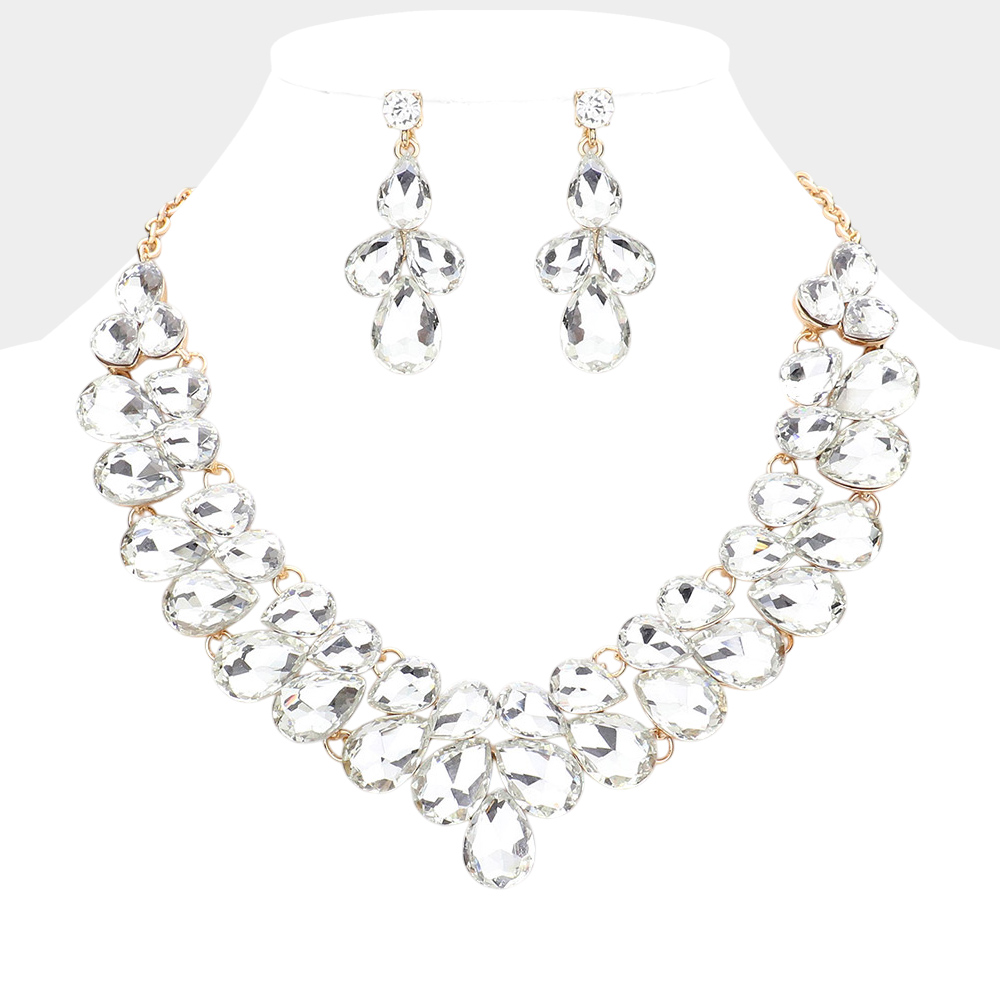 Oval Stone Cluster Pointed Rhinestone Paved Chandelier Evening Earrings