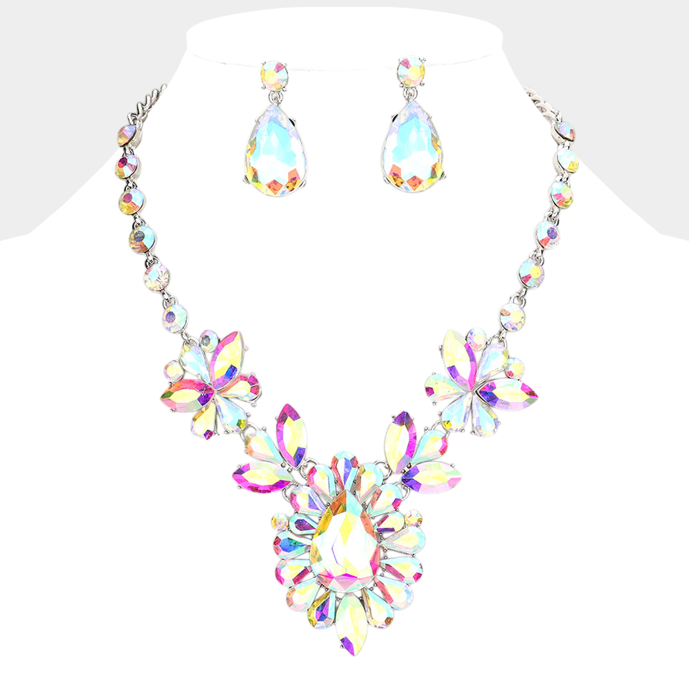 Teardrop Stone Cluster Evening Necklace