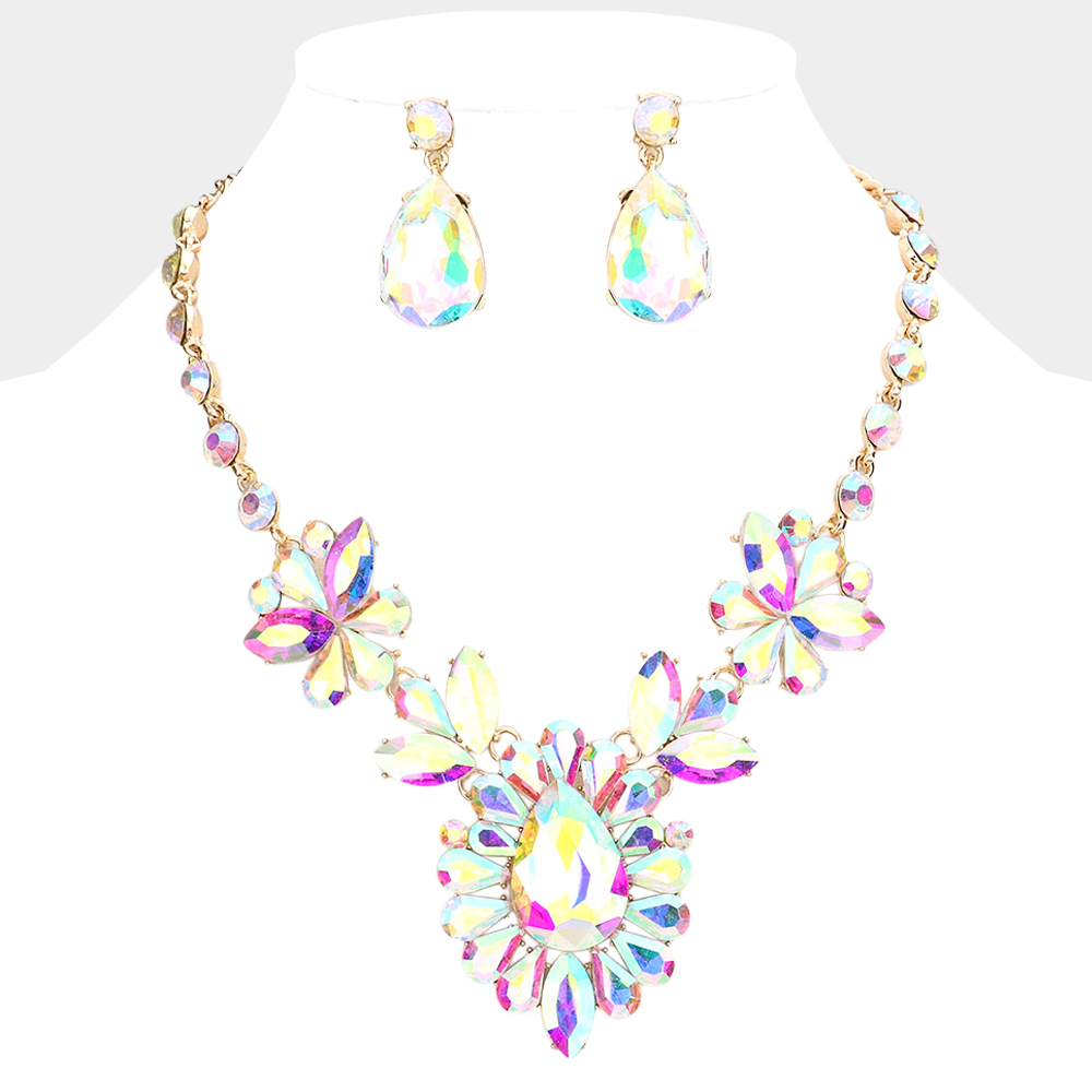 Marquise Rhinestone Trim Oval Dangle Necklace Jewelry Set