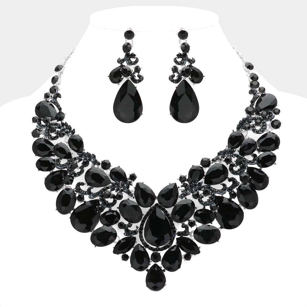 Teardrop Stone Embellished Statement Evening Necklace