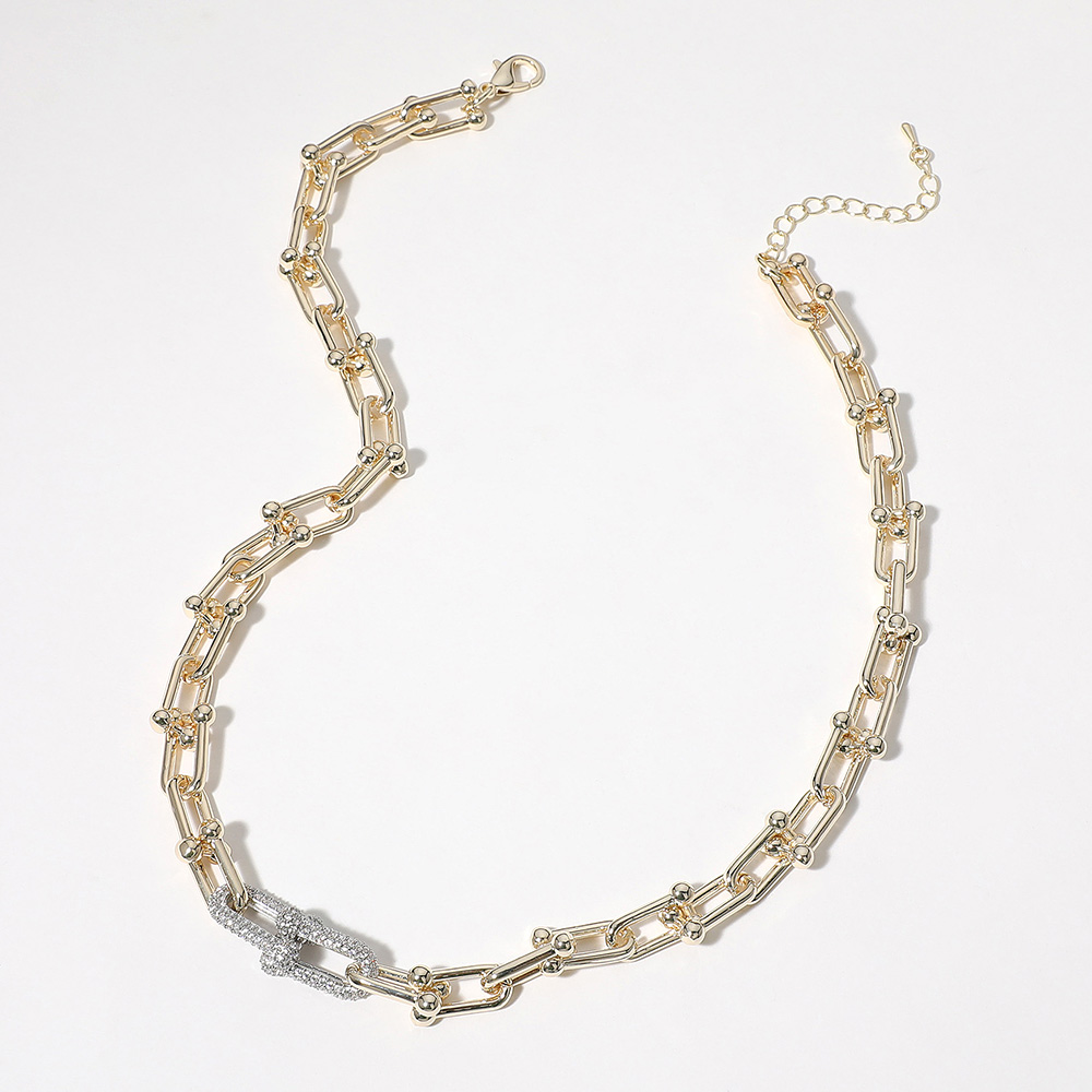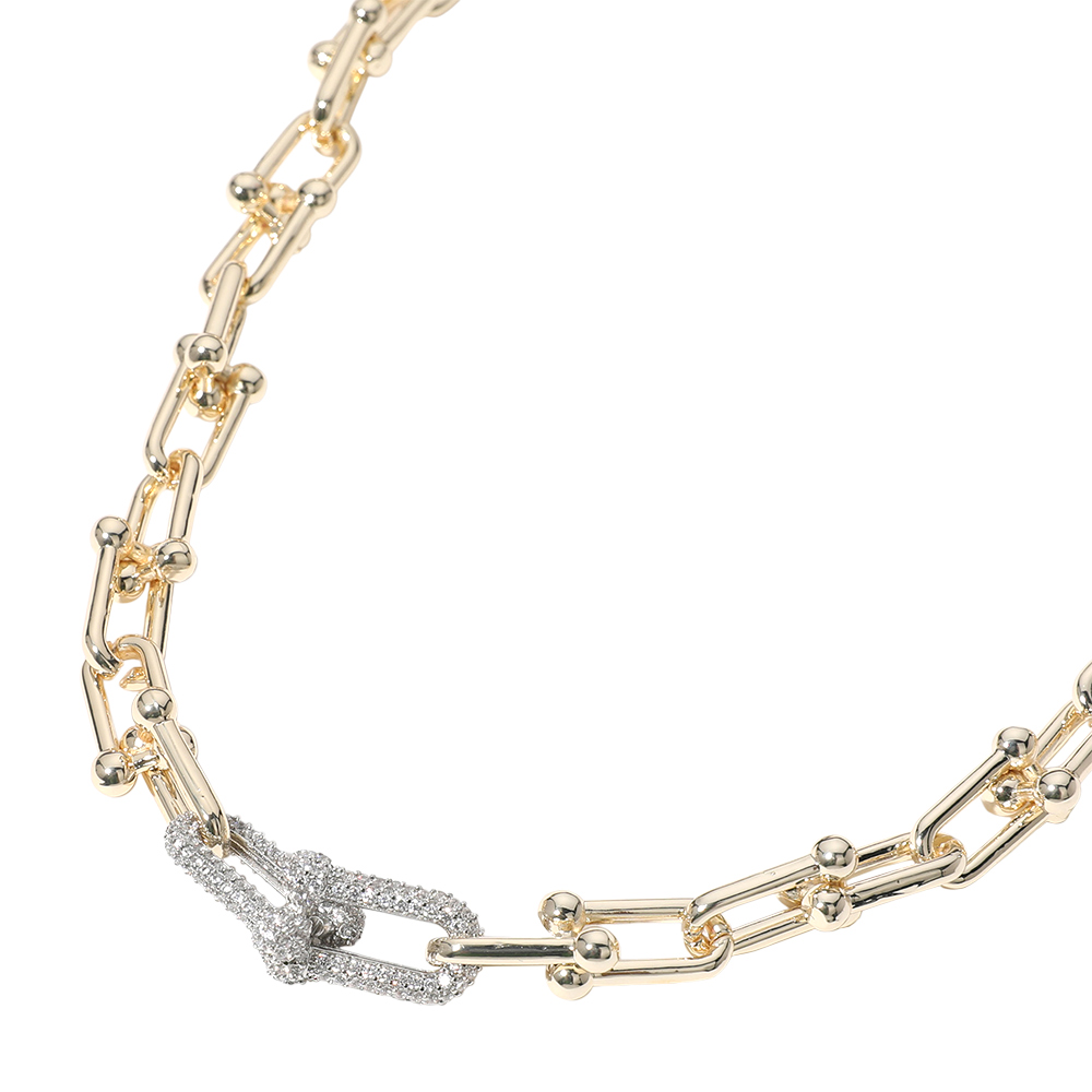 14K Gold Plated CZ Stone Paved Hardware Chain Necklace