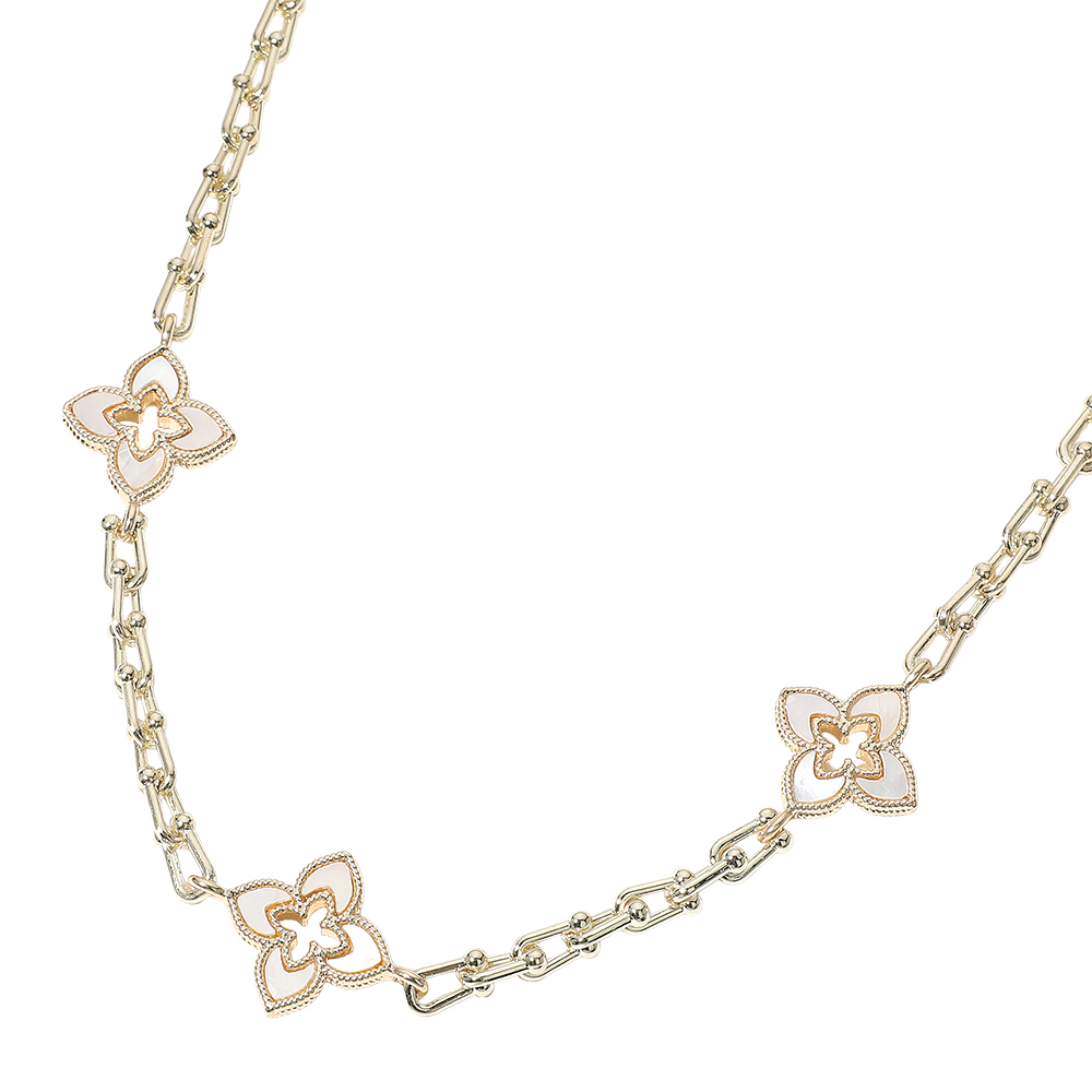Details • Necklace Size : 16.75" + 2.25" L • Decor Size : 0.75" L • Bring timeless beauty to your look with this elegant floral necklace featuring a delicate chain and charming flower accents. Ideal for daily wear or special occasions, it adds a graceful touch of sophistication and makes a perfect gift for someone special. • Gold Dipped