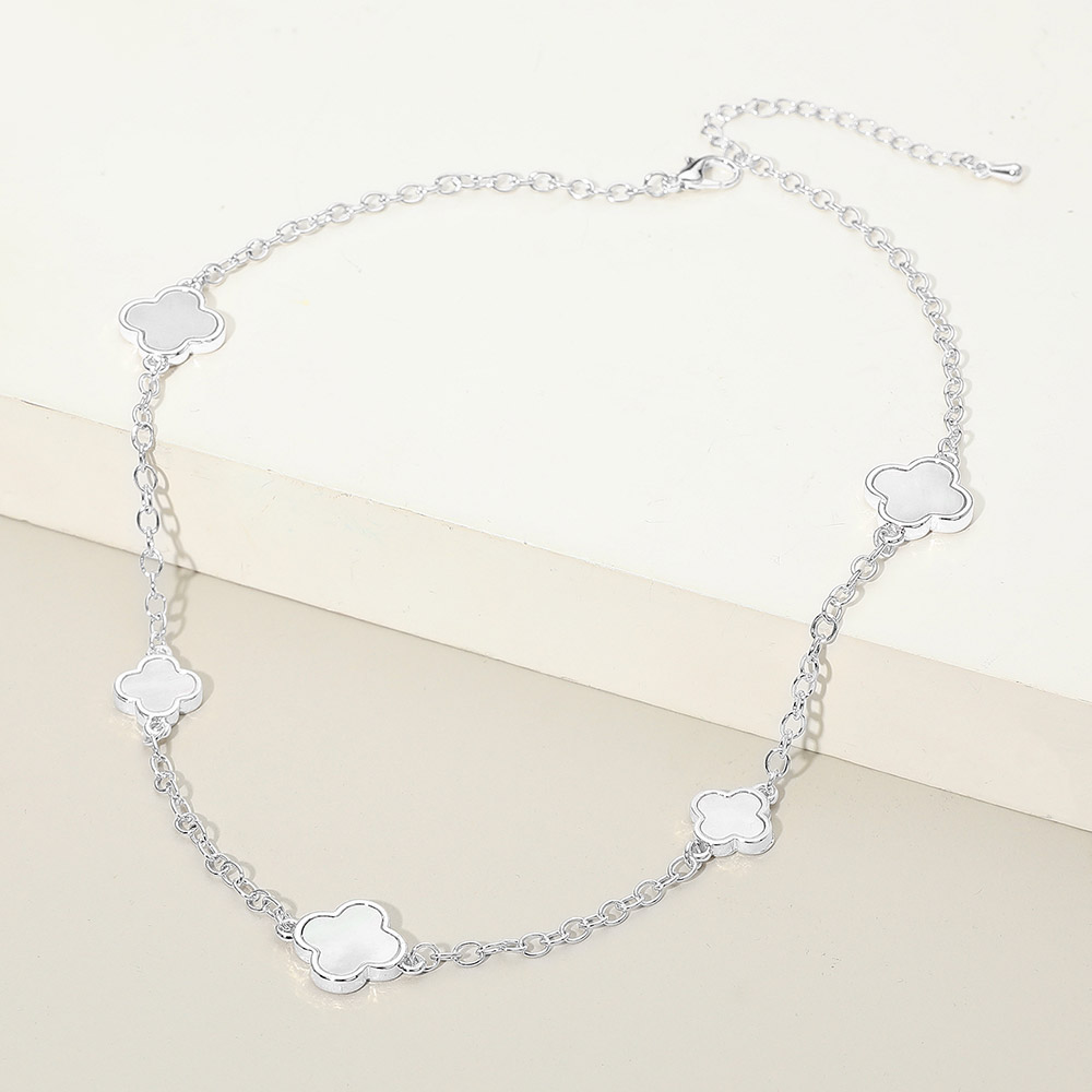 • Elevate your style with this chic quatrefoil station necklace, crafted with a sleek silhouette and timeless charm. Its delicate linked design offers a refined accent for both casual and elegant looks, making it an effortless piece to layer or wear alone for everyday sophistication.