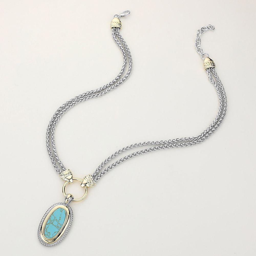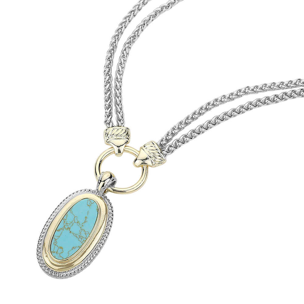 14K Gold Plated Oval Natural Stone Pendant Double Chain Necklace