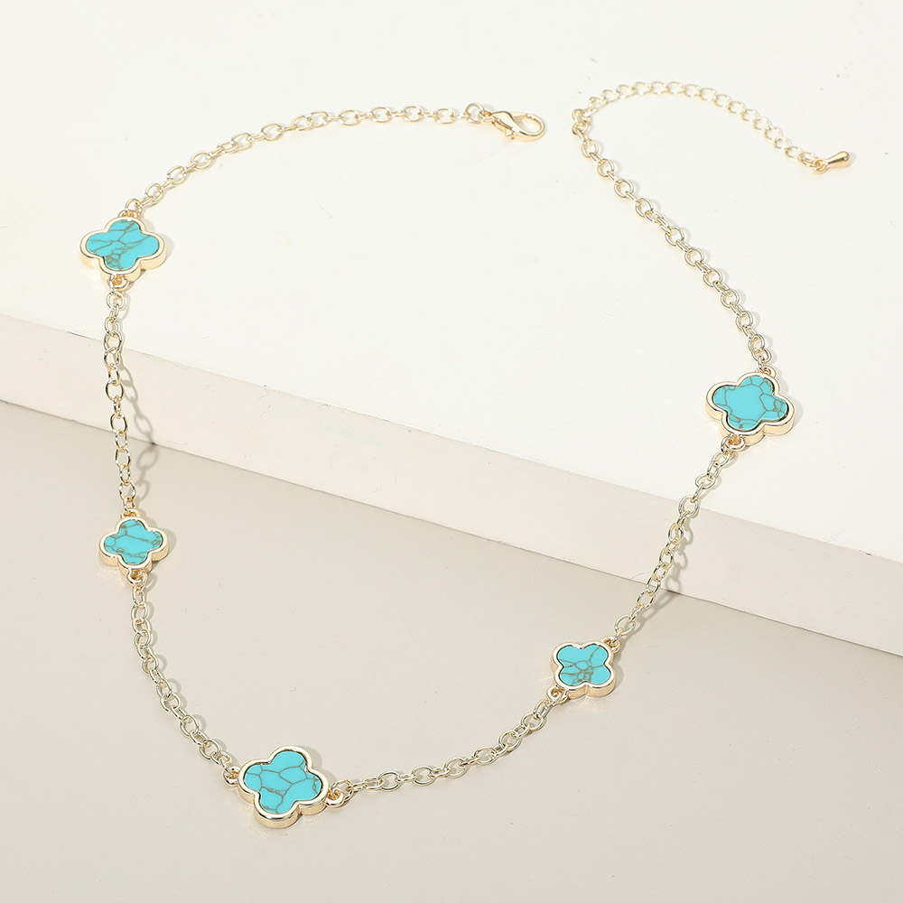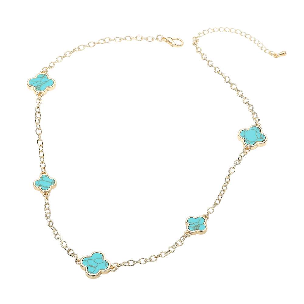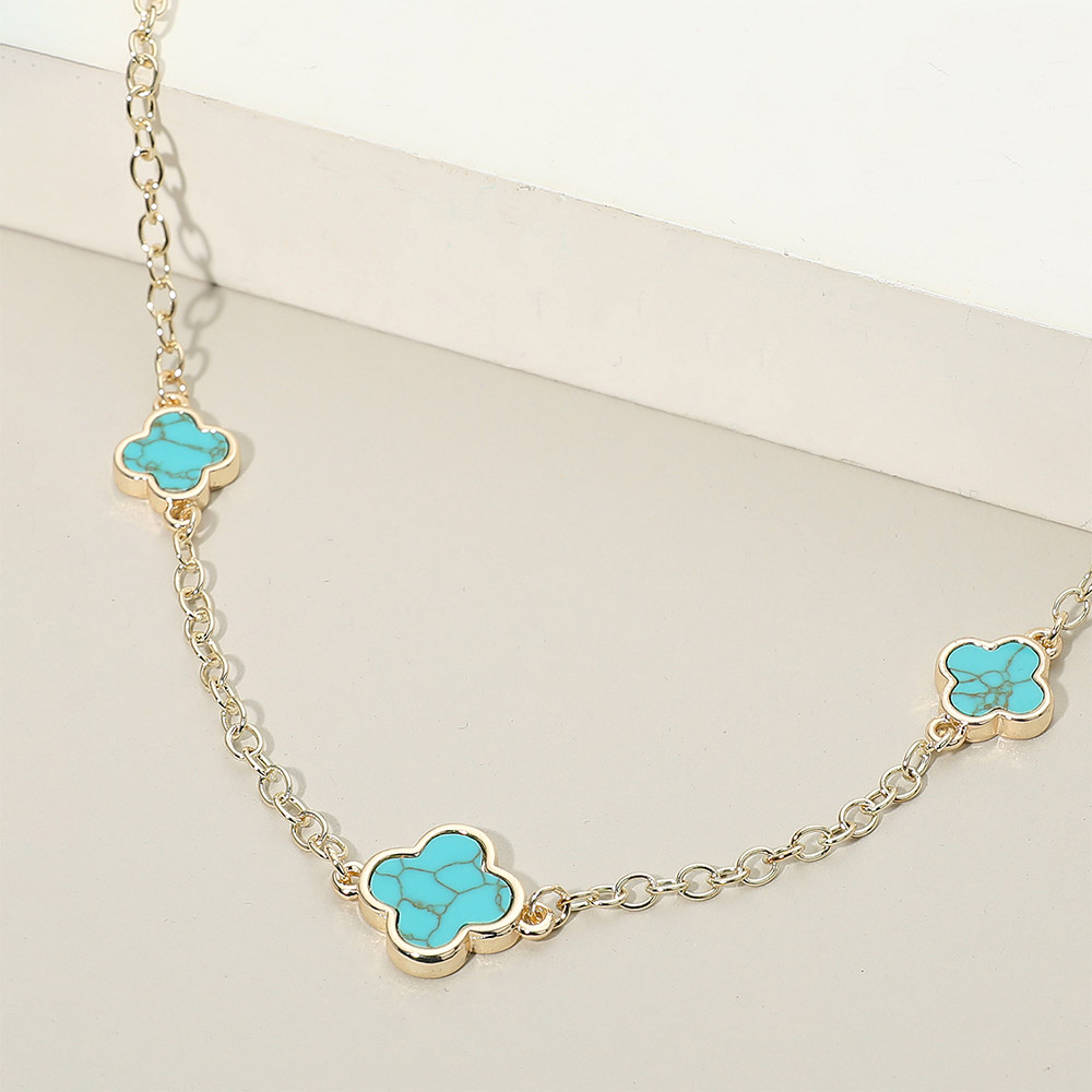 Details • Necklace Size : 16.5" + 2" L • Decor Size : 0.6" L • Elevate your style with this chic quatrefoil station necklace, crafted with a sleek silhouette and timeless charm. Its delicate linked design offers a refined accent for both casual and elegant looks, making it an effortless piece to layer or wear alone for everyday sophistication. • Gold Dipped