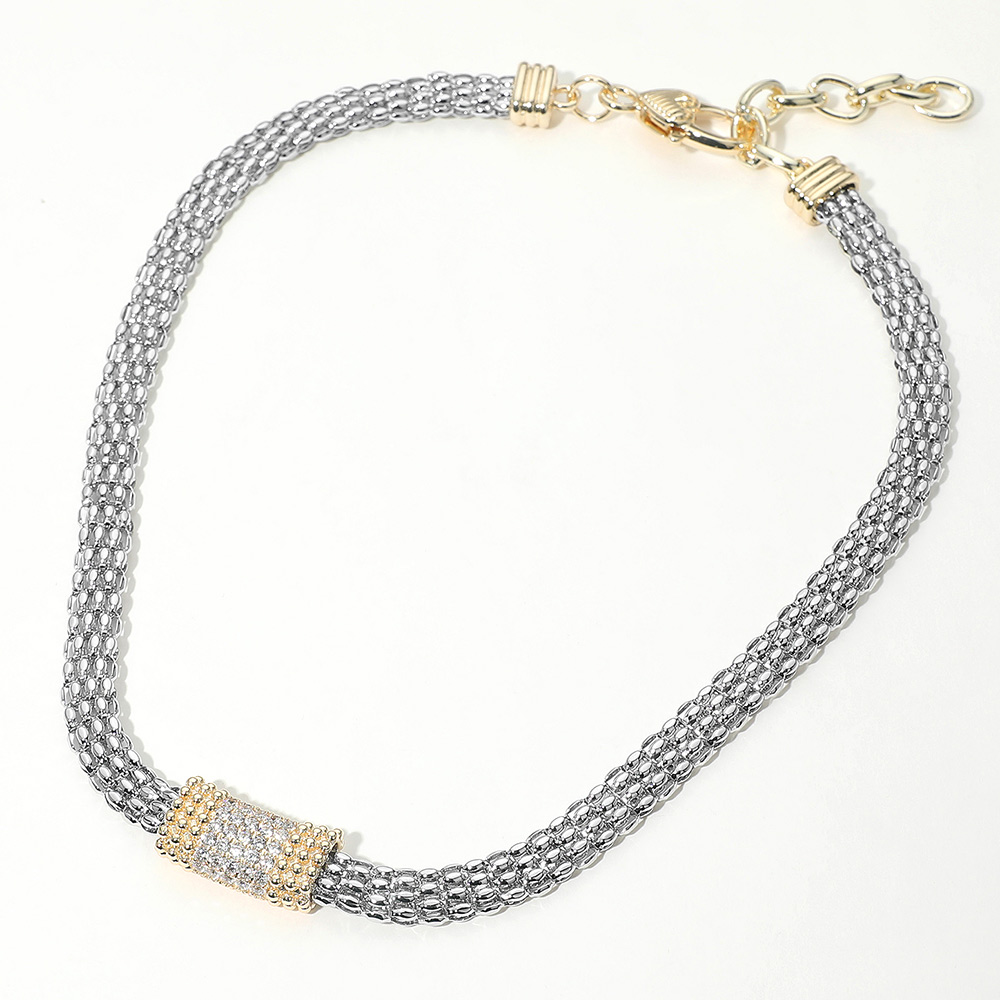 Details • Necklace Size : 17" + 2.5" L • Decor Size : 0.5" L • Elevate your style with this refined chain necklace featuring a rectangular pendant adorned with sparkling crystals. Perfect for day-to-night wear, this timeless design adds a polished touch to casual outfits or special occasion ensembles. • CZ Cubic Zirconia • Gold Dipped
