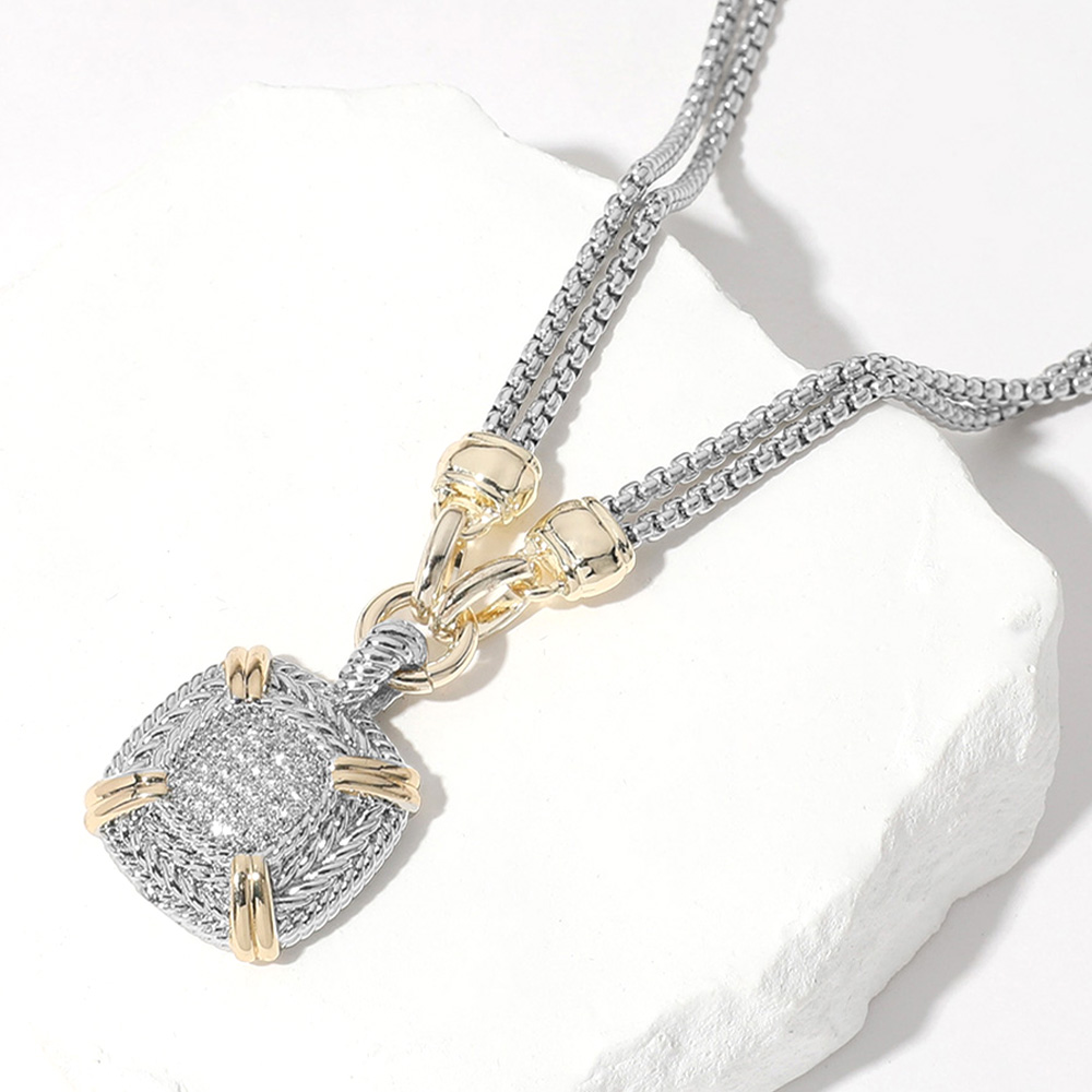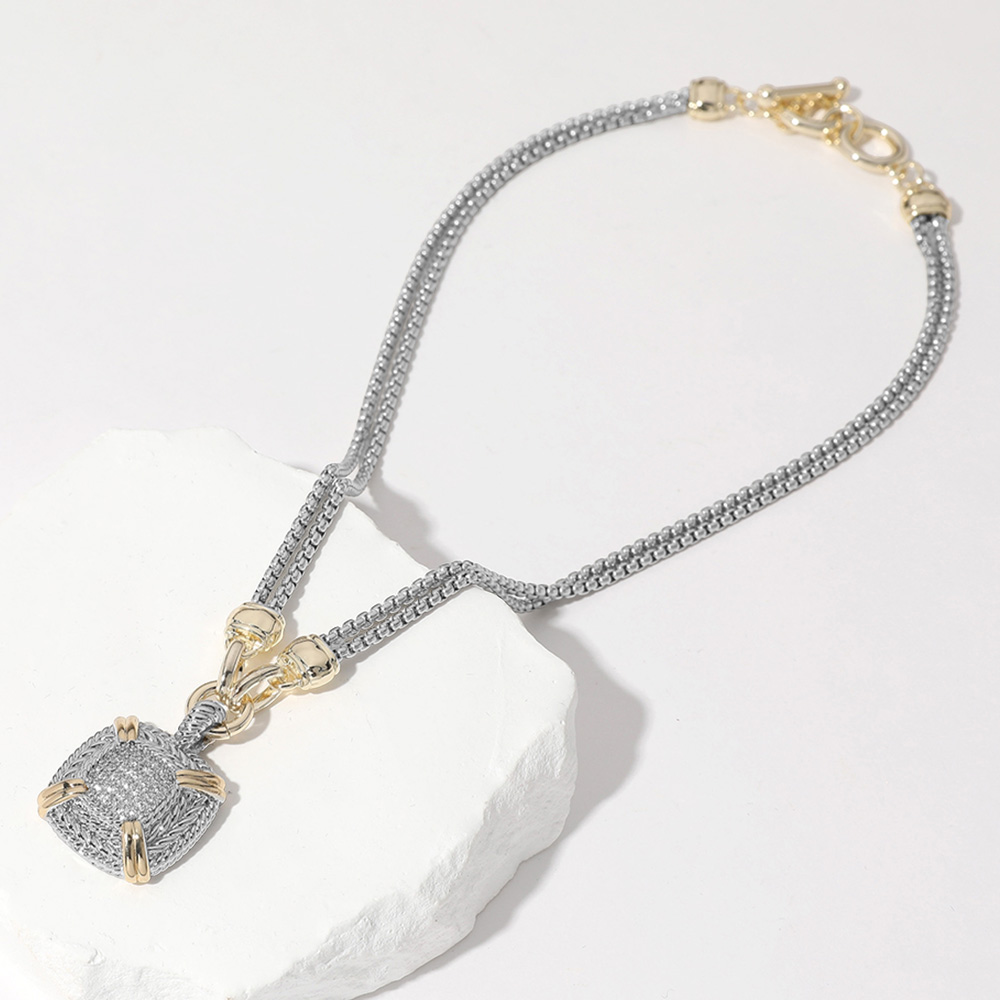 • Stylish necklace with a cushion-shaped pendant and dual-tone chain design. Perfect blend of modern and classic, suitable for elevating any outfit.