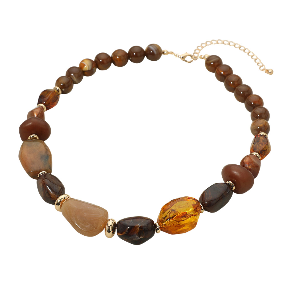 Details • Necklace Size : 18" + 3" L • Decor Size : 0.8" L • Elevate your style with this 18" beaded necklace featuring a mix of smooth round and chunky polished stones. Accented with metallic spacers for added shine, this statement piece blends organic charm with modern elegance, making it perfect for everyday wear or special occasions. • Gold Dipped • Lead and Nickel Compliant • Made In Korea