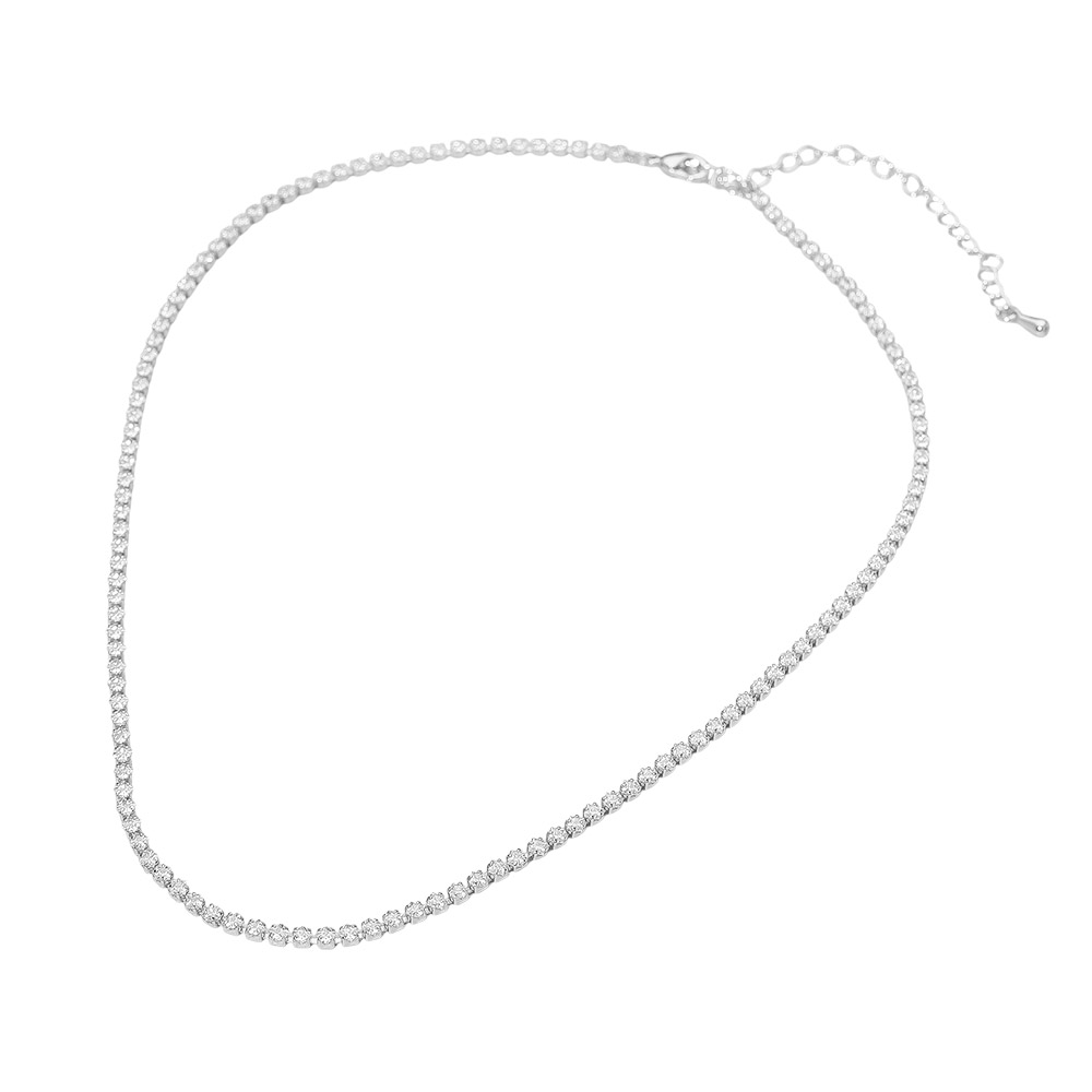 Details • Necklace Size : 16" + 3" L • Decor Size : 0.1" L • Elegant tennis necklace featuring a sleek line of sparkling crystals for a refined, timeless look. Perfect for layering or wearing solo to add subtle sophistication to any outfit. A versatile accessory that enhances both everyday and special occasion styles with effortless glamour. • Gold Dipped • Lead and Nickel Compliant