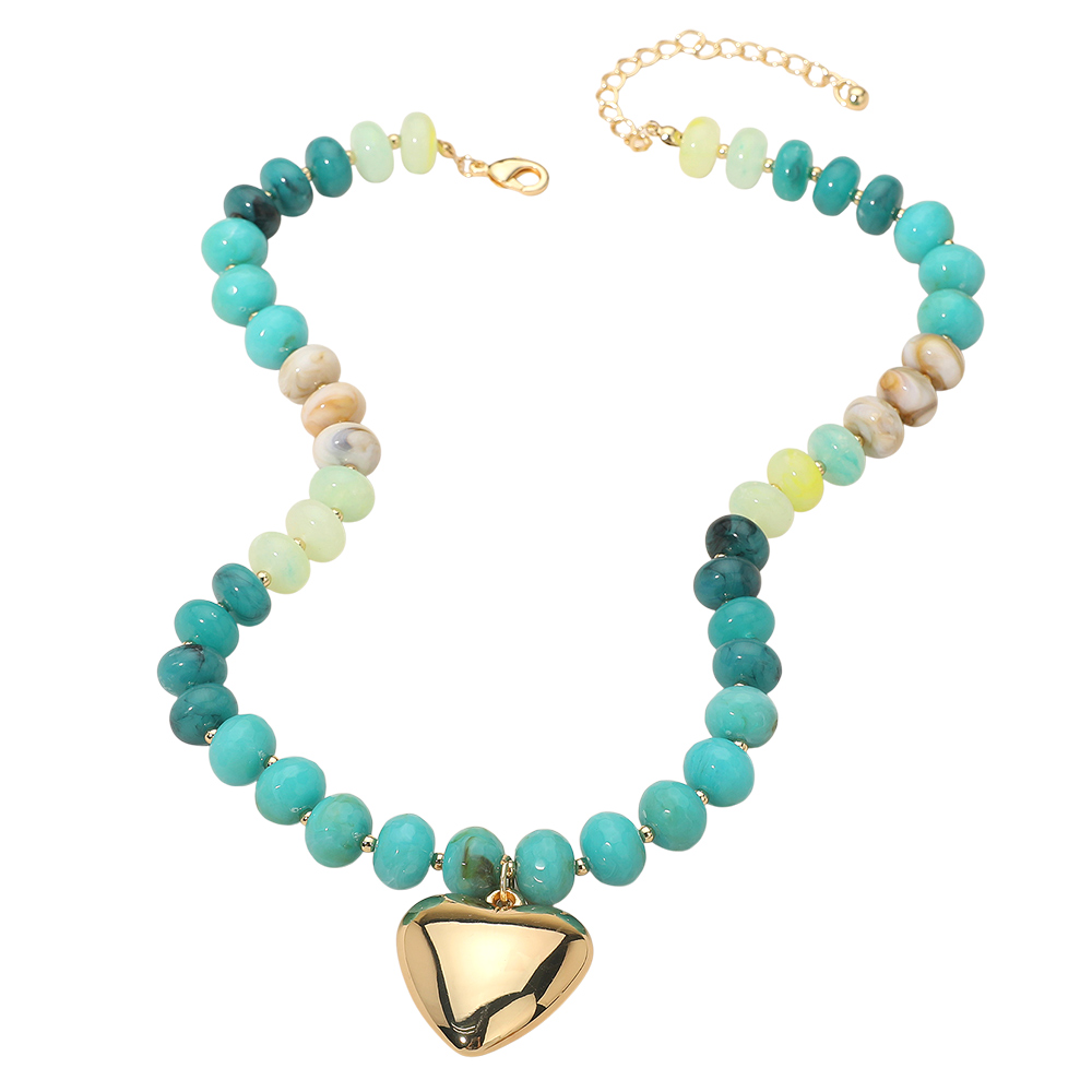 Details • Necklace Size : 18" + 3" L • Decor Size : 0.4" L • Pendant Size : 1.25" X 1.25" • Add charm to any outfit with this beaded necklace featuring smooth, earthy-toned beads and a bold polished heart pendant. Perfect for layering or wearing solo, it’s a versatile accessory that blends natural elegance with a modern statement look. • Gold Dipped • Lead and Nickel Compliant