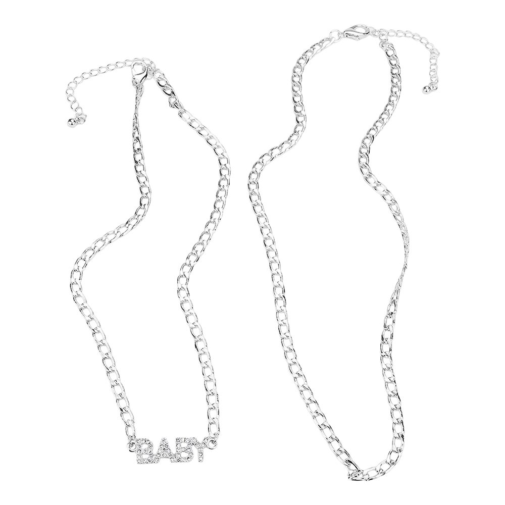 2PCS - BABY Rhinestone Embellished Pendant Message Necklaces