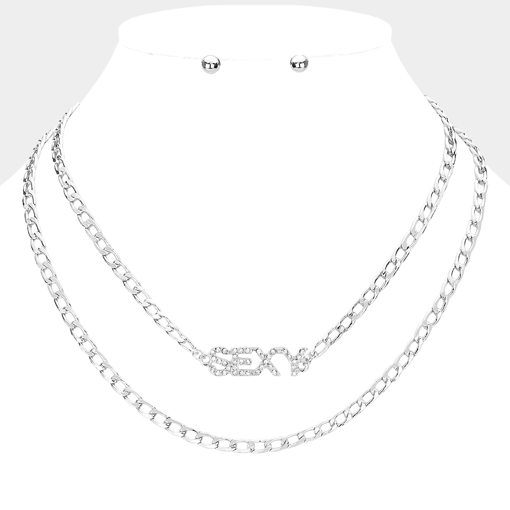 2PCS - SEXY Rhinestone Embellished Pendant Message Necklaces