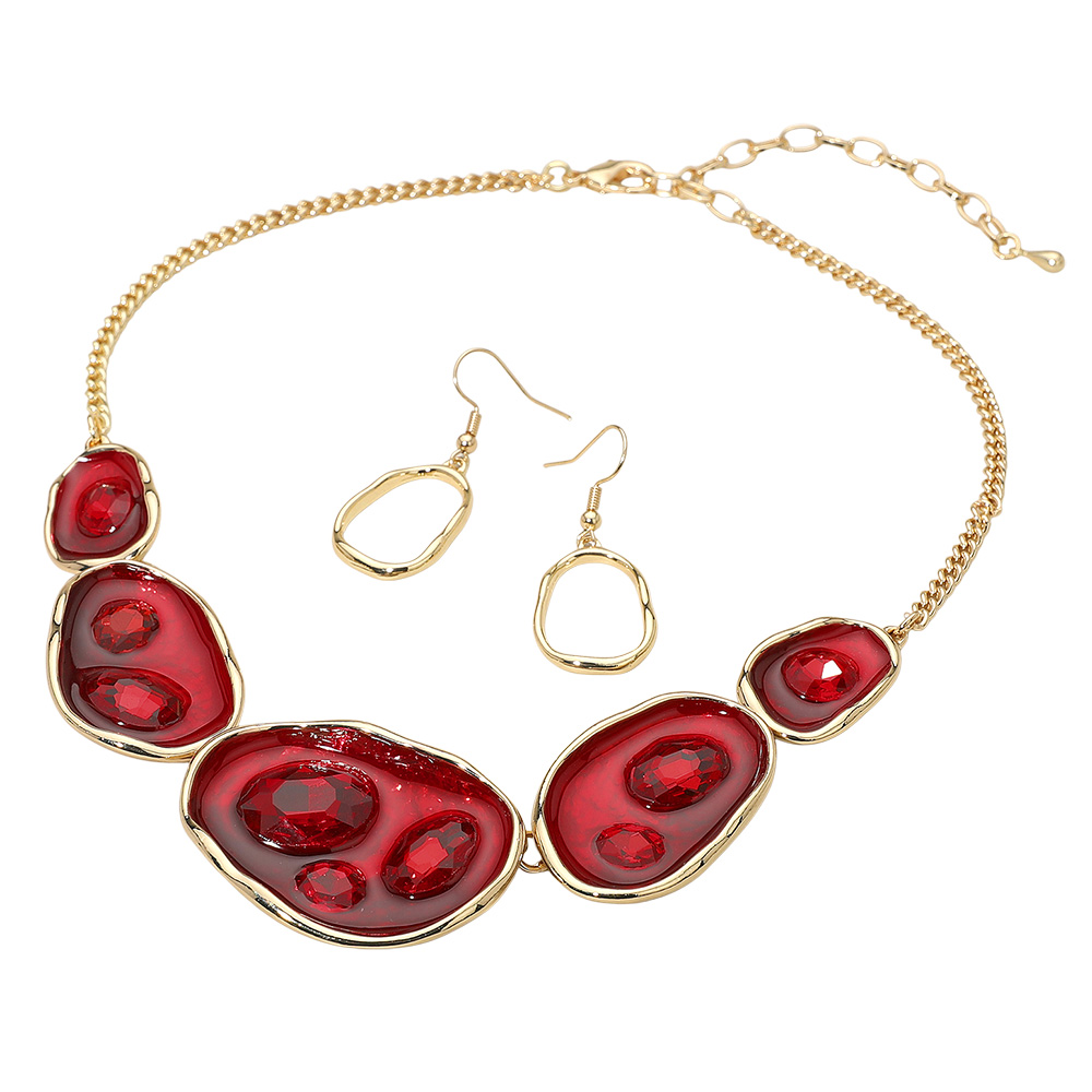 • Contemporary jewelry set featuring a bold necklace and matching earrings with artistic gem accents framed in fluid shapes. Perfect for parties, formal events, or chic everyday wear. A statement-making accessory that combines modern style with elegant sophistication.