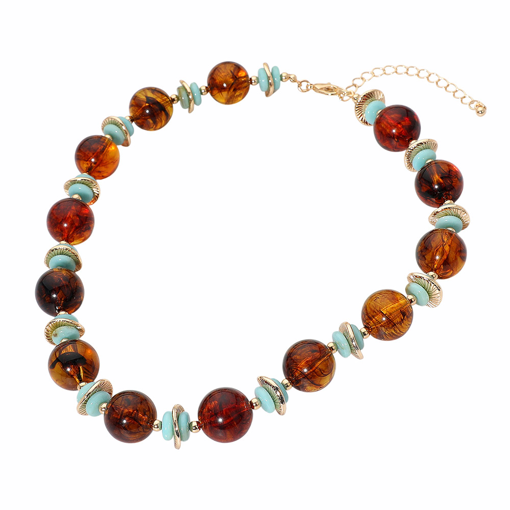 Abstract Marbled Resin Ball Beaded Necklace Abstract Marbled Resin Ball Beaded Necklace