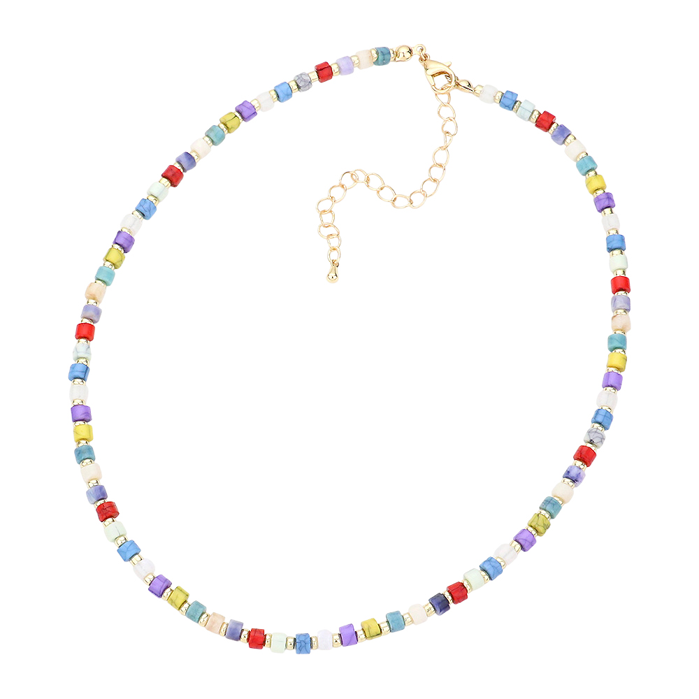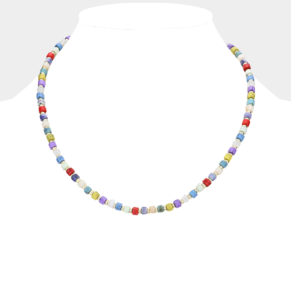 Polished Metal Accent Resin Pebble Beaded Stretch Bracelet