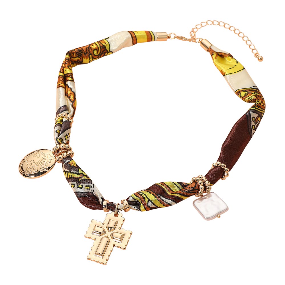 Boho Metal Cross Square Pearl Floral Oval Charm Fabric Necklace Boho Metal Cross Square Pearl Floral Oval Charm Fabric Necklace