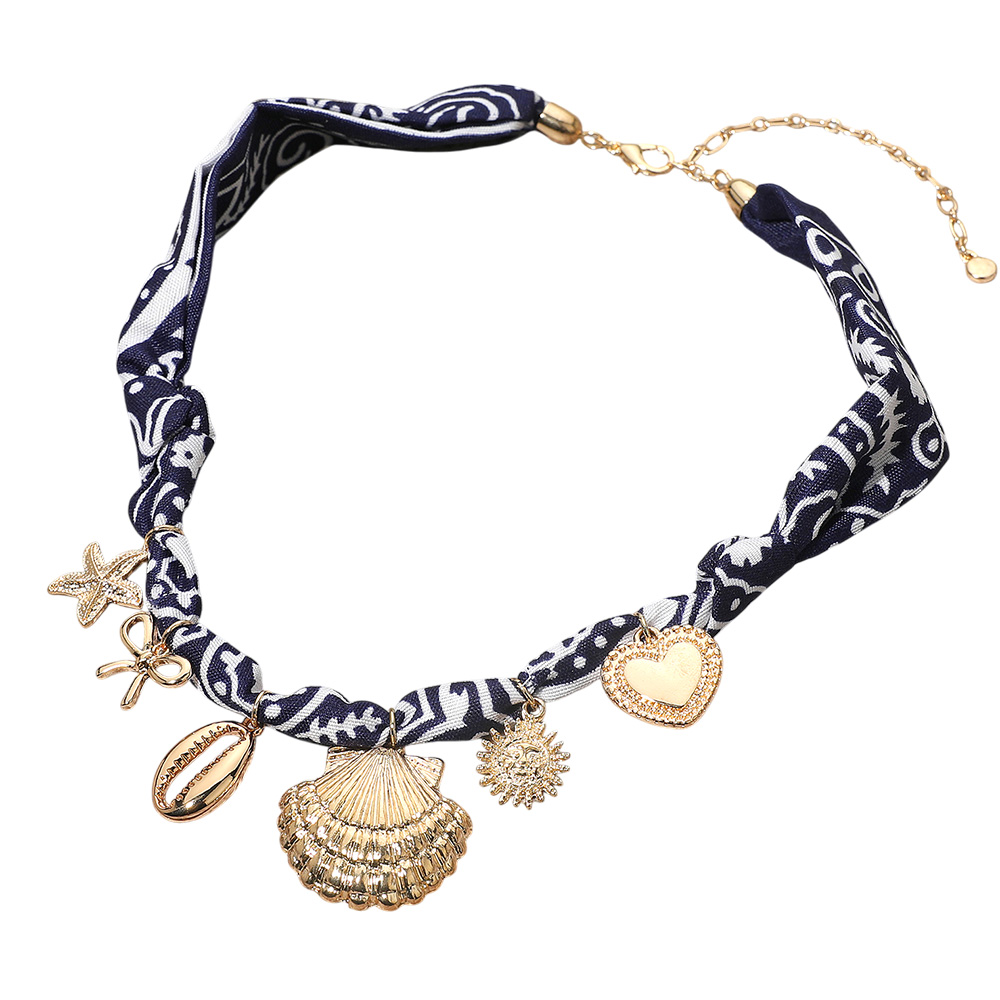 Boho Sea Shell Heart Sun Bow Starfish Charm Fabric Necklace