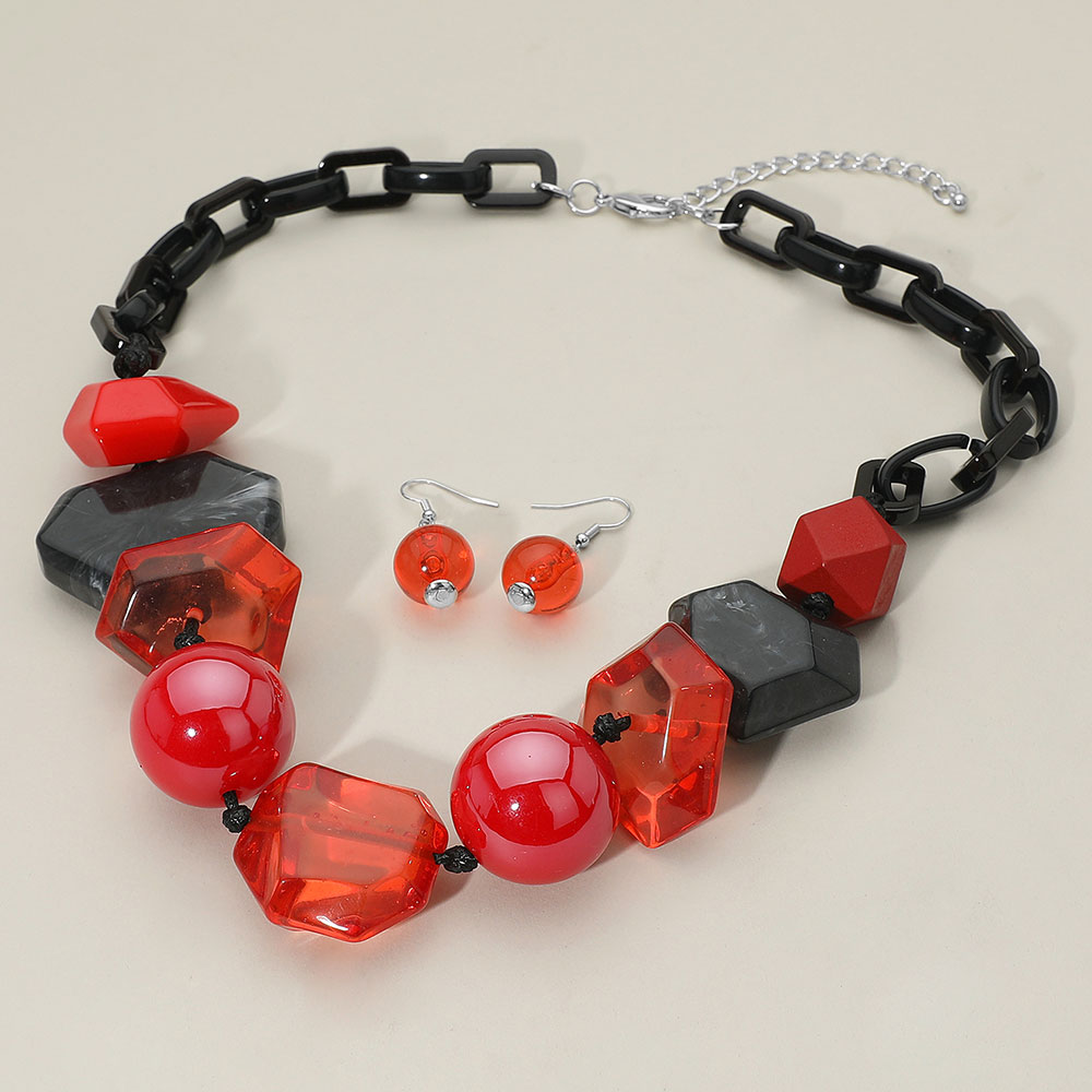 • Create bold impact with this geometric bead necklace and matching earring set designed for statement styling. Perfect for elevating everyday looks or completing evening outfits, it offers coordinated elegance and modern flair that makes a thoughtful gift or standout personal accessory.