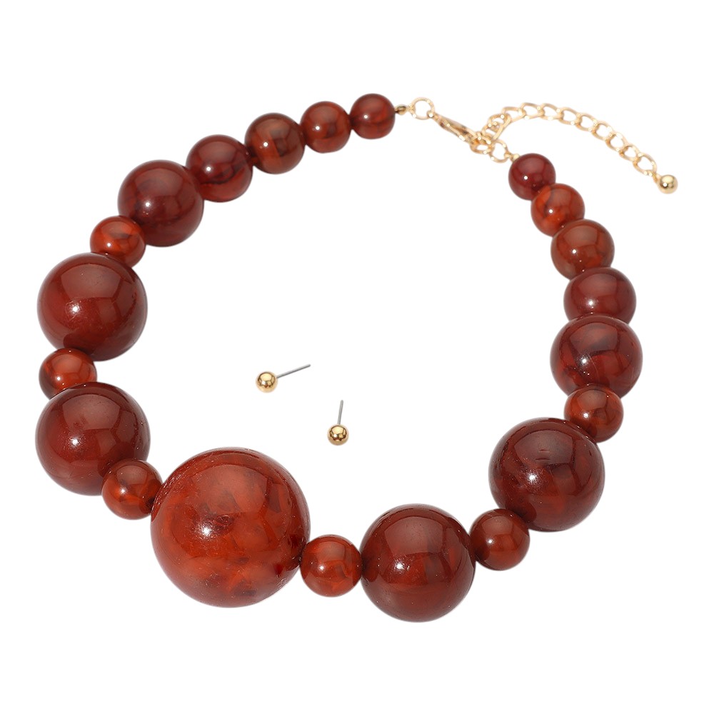 Bold Marbled Resin Ball Beaded Statement Necklace