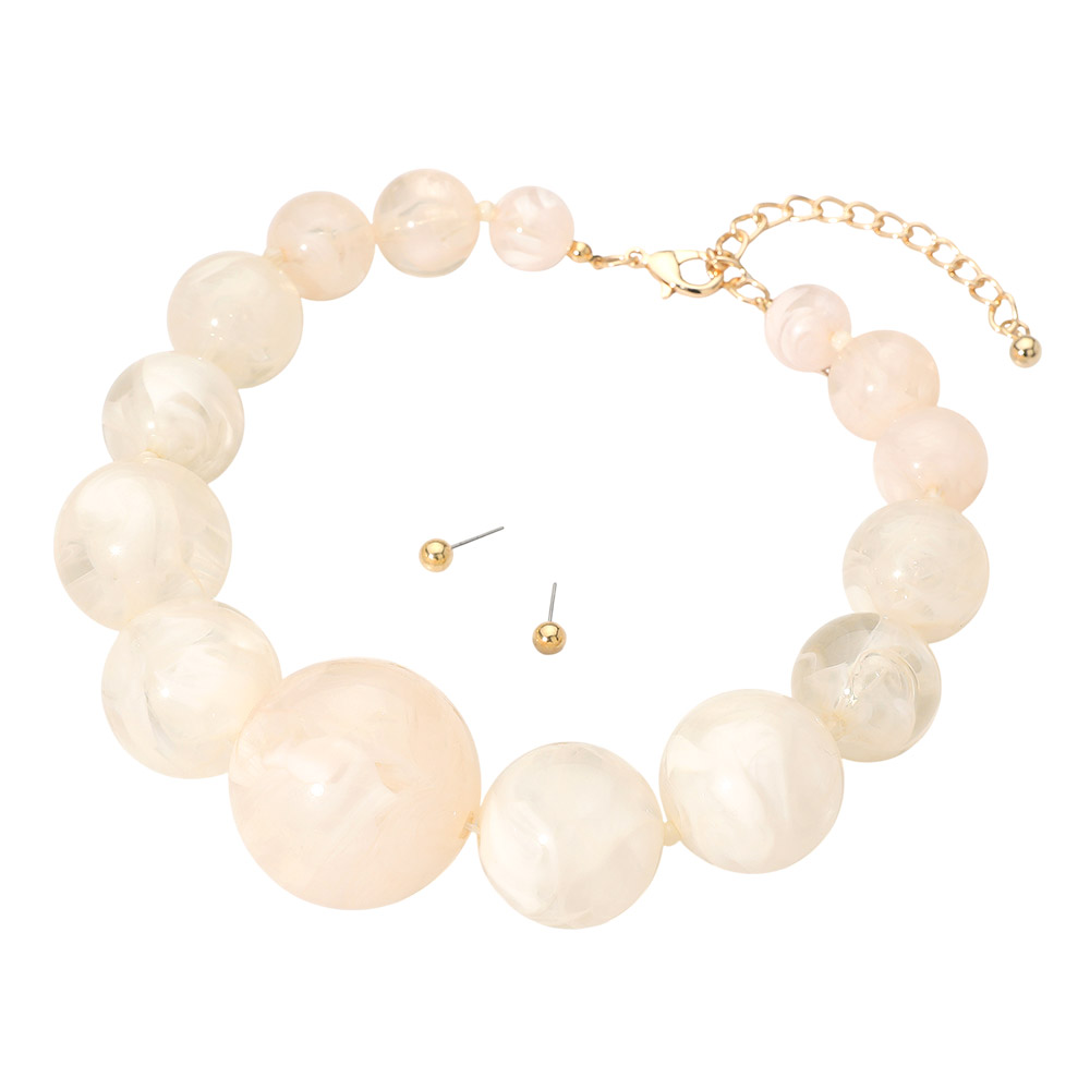 Details • Necklace Size : 17" + 4" L • Decor Size : 1.5" L • Earrings Size : 0.2" L • Enhance your outfit with this glossy round beaded necklace and matching stud earring set. The graduated bead design adds depth and balance, while the adjustable chain ensures a perfect fit. Ideal for creating a bold yet elegant statement that transitions effortlessly from day to night. • Lead and Nickel Compliant
