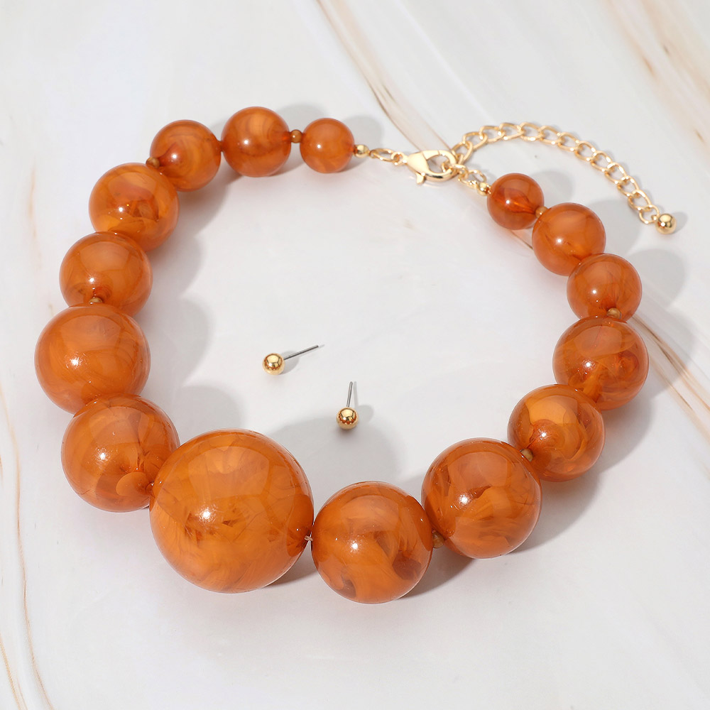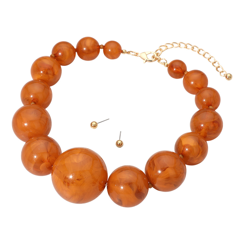 Details • Necklace Size : 17" + 4" L • Decor Size : 1.5" L • Earrings Size : 0.2" L • Enhance your outfit with this glossy round beaded necklace and matching stud earring set. The graduated bead design adds depth and balance, while the adjustable chain ensures a perfect fit. Ideal for creating a bold yet elegant statement that transitions effortlessly from day to night. • Lead and Nickel Compliant
