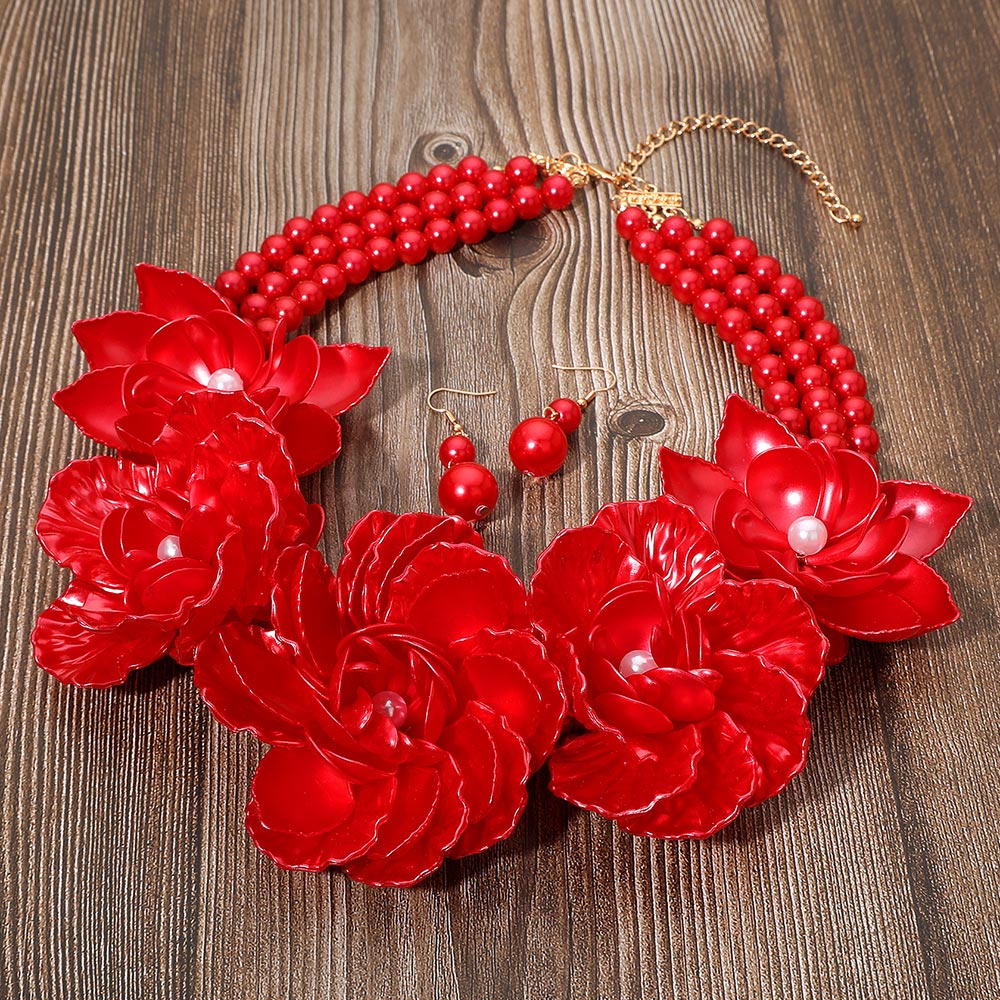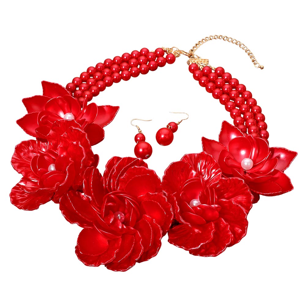 • An elegant statement necklace set featuring layered floral accents and coordinating earrings with an adjustable fit. Designed to elevate formal looks, weddings, parties, and special occasions, offering graceful style and standout detail for memorable outfits.