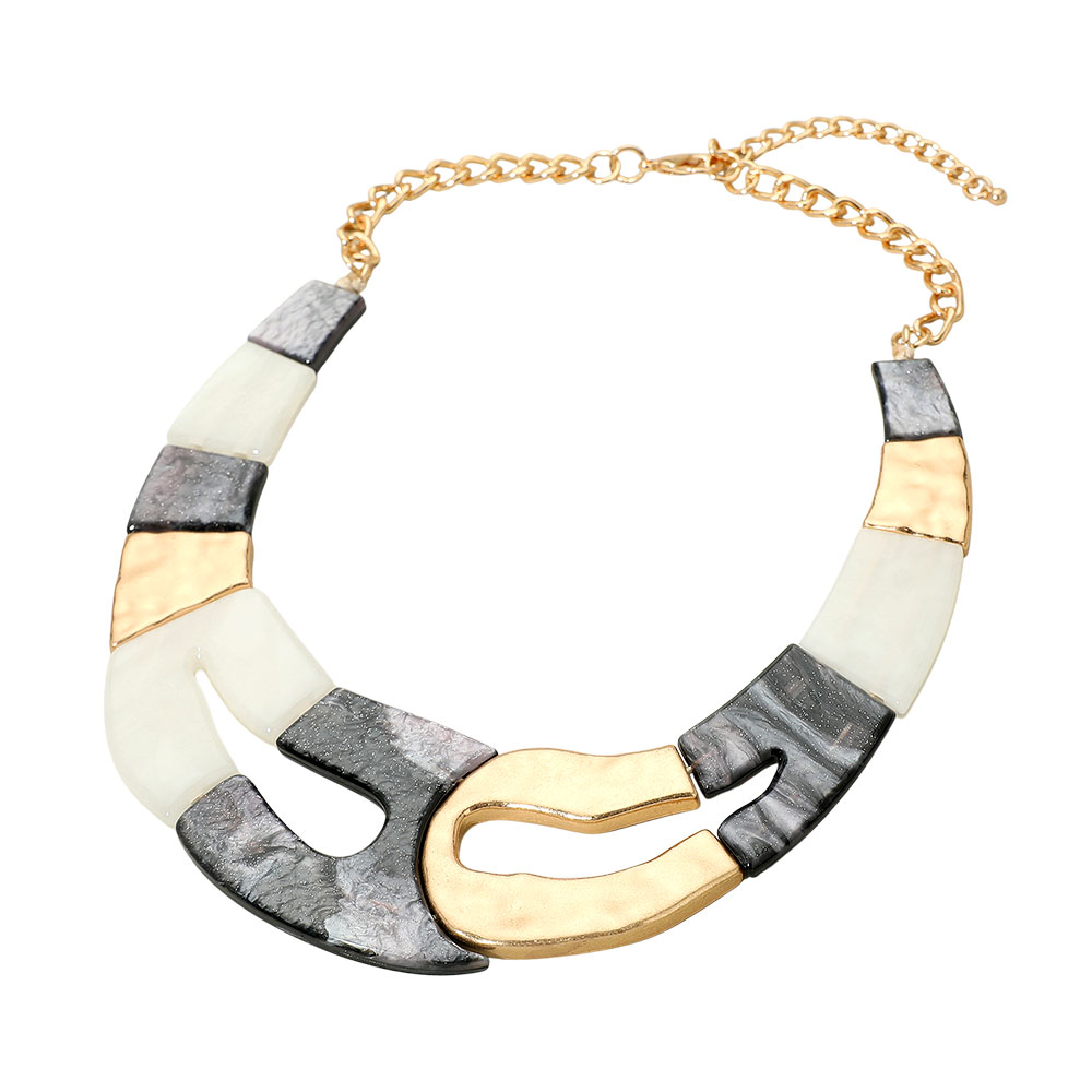 Bold Resin Metal Mixed Abstract Link Statement Necklace