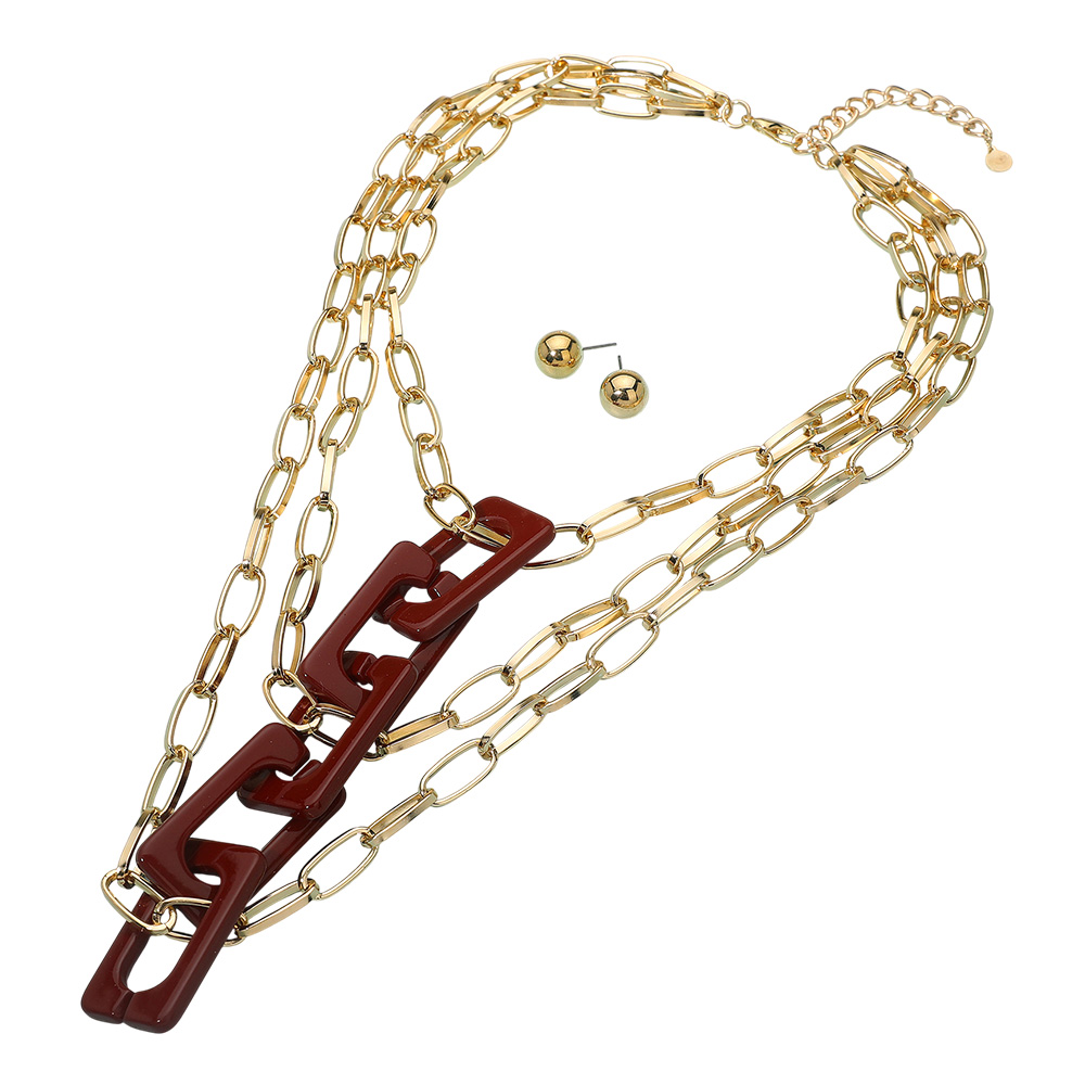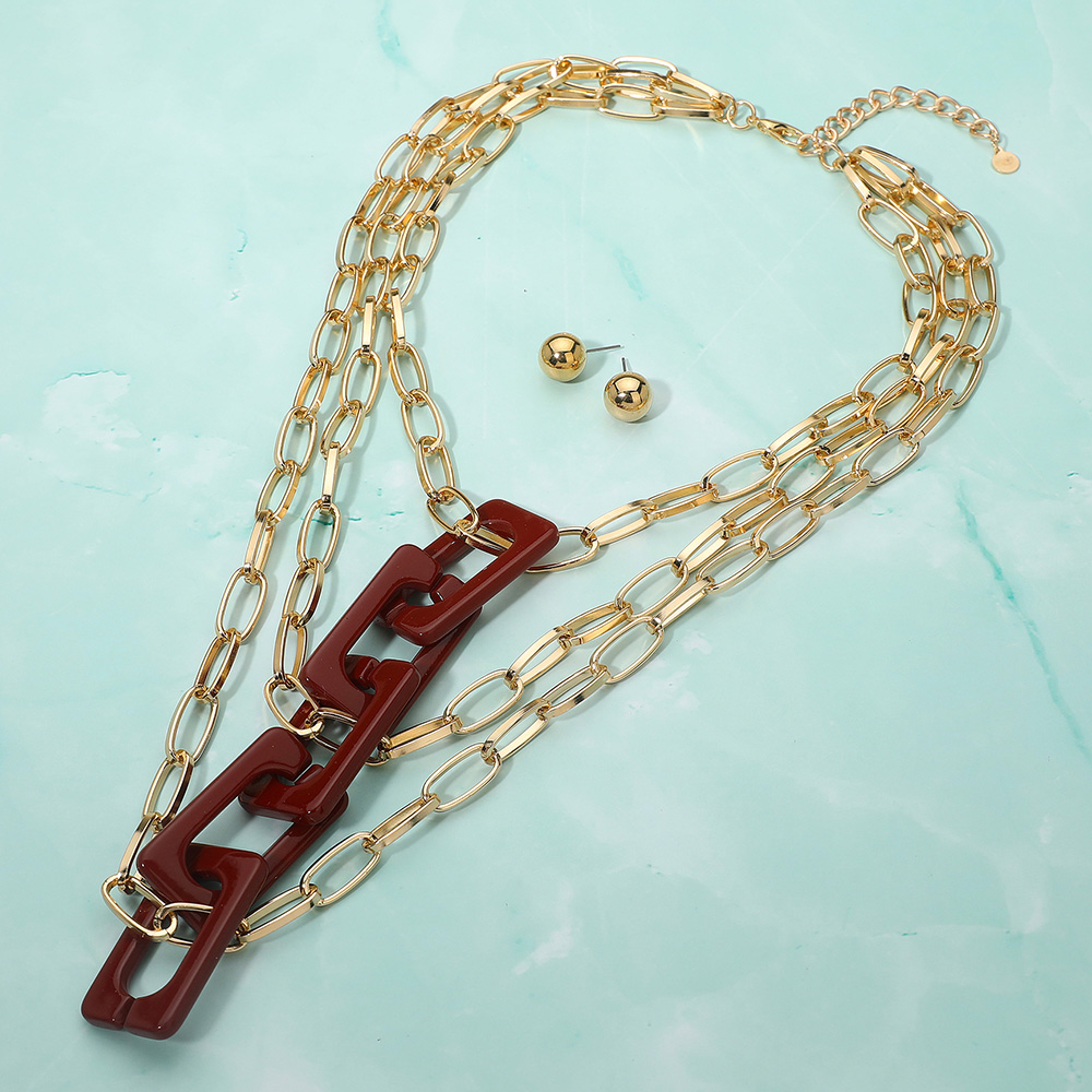 Details • Necklace Size : 18.5" + 4"L • Decor Size : 5" L • Earrings Size : 0.4" L • Bold layered chain necklace designed with oversized links and paired with matching stud earrings for a polished finish. Perfect for making a statement, this versatile jewelry set complements casual and dressy looks, adding modern edge and sophistication to your accessory collection. • Lead and Nickel Compliant