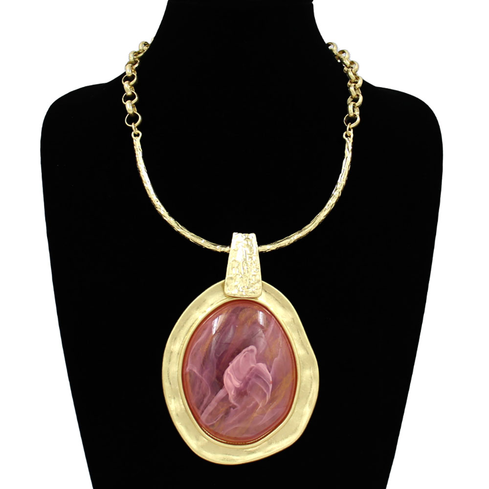 Bold Sculptural Oval Resin Plate Pendant Accent Statement Necklace