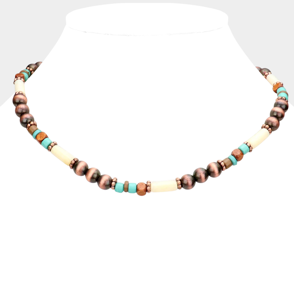 Bold Wooden Trapezoid Beaded Statement Necklace