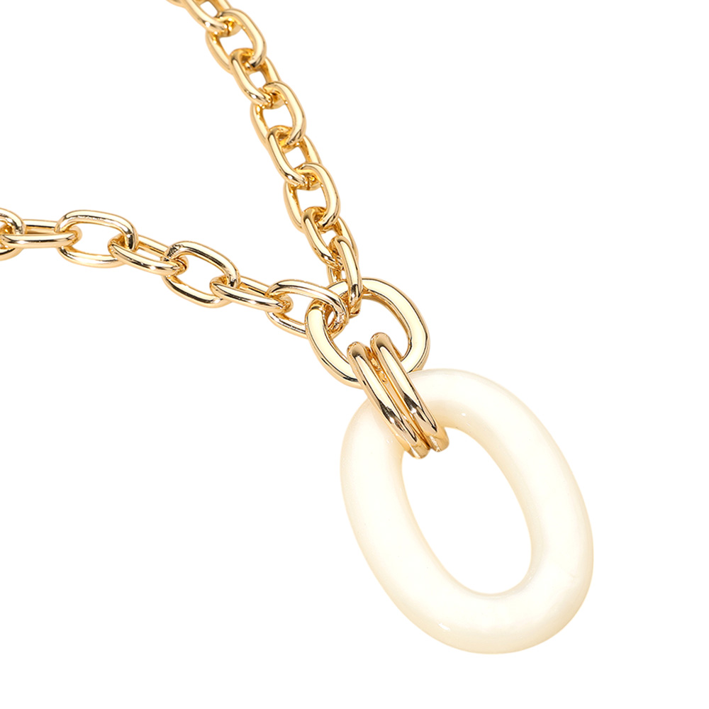 Celluloid Acetate Oval Ring Pendant Chunky Chain Necklace