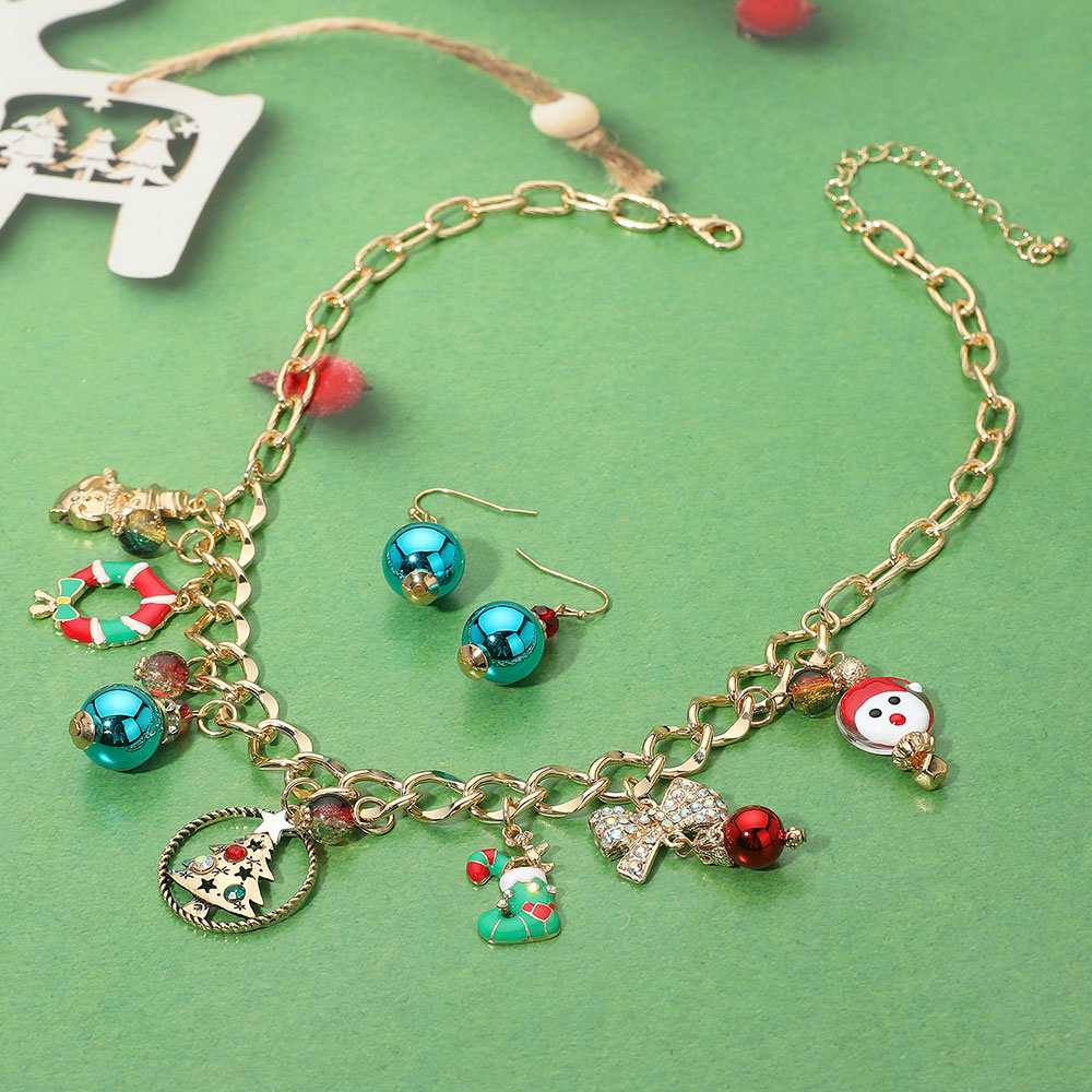 • Playful holiday charm jewelry set featuring a statement necklace adorned with seasonal pendants and matching drop earrings. A cheerful and sparkling accessory perfect for holiday parties, gifting, and festive celebrations.
