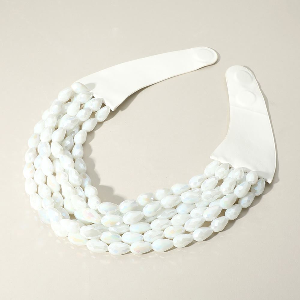 Chunky Faceted Acrylic Teardrop Beaded Multi Layered Faux Leather Magnetic Necklace