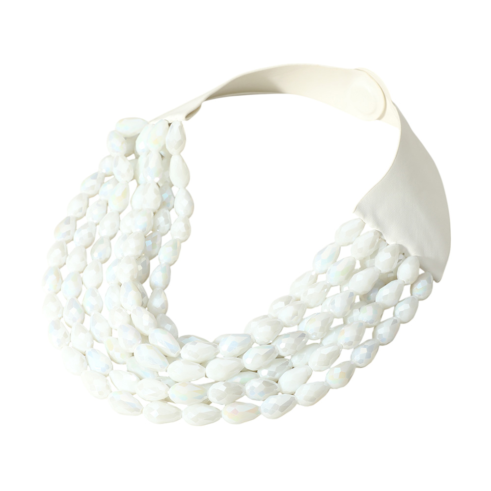 Chunky Faceted Acrylic Teardrop Beaded Multi Layered Faux Leather Magnetic Necklace