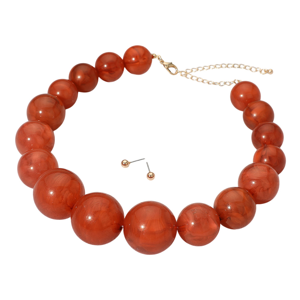 Details • Necklace Size : 16.5" + 4.5" L • Decor Size : 1.25" L • Earrings Size : 0.1" L • Elevate your look with this chunky beaded necklace and matching stud earrings set. Featuring oversized round beads and adjustable length, this statement piece adds bold style to casual or formal outfits. Perfect for parties, events, or everyday fashion, it’s a must-have for your jewelry collection. • Lead and Nickel Compliant