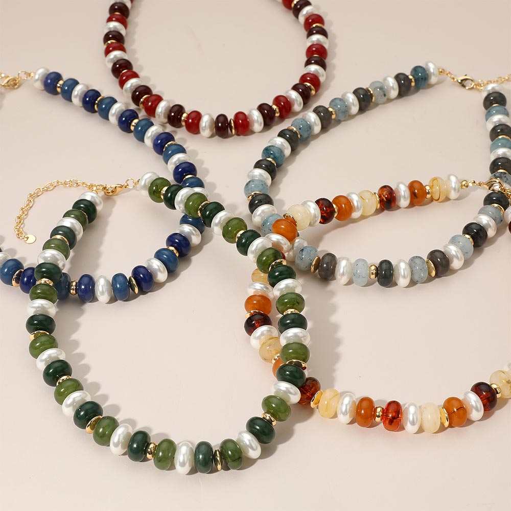 Chunky Marbled Beads Pearl Beaded Statement Necklace