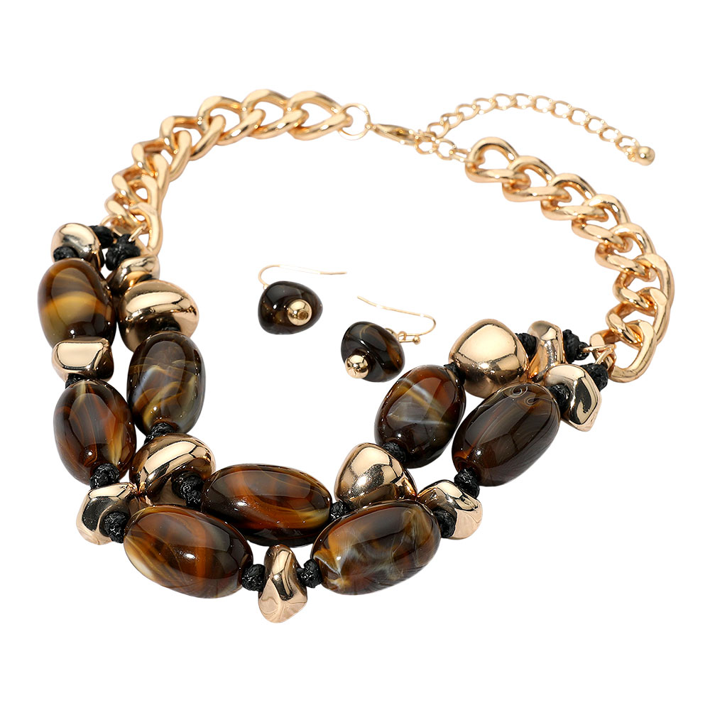 Chunky Marbled Pebble Beaded Layered Statement Necklace Chunky Marbled Pebble Beaded Layered Statement Necklace