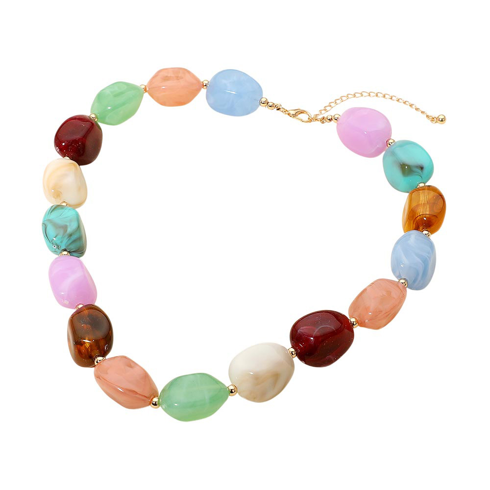 Details • Necklace Size : 18" + 3" L • Decor Size : 0.75" L • This chunky statement necklace features smooth marbled beads that add bold style to any outfit. Its unique texture and striking design make it perfect for elevating everyday looks or complementing special occasion wear, offering a fashionable accent that stands out with modern charm. • Lead and Nickel Compliant