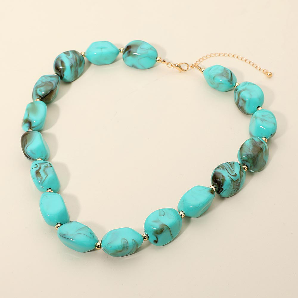 Details • Necklace Size : 18" + 3" L • Decor Size : 0.75" L • This chunky statement necklace features smooth marbled beads that add bold style to any outfit. Its unique texture and striking design make it perfect for elevating everyday looks or complementing special occasion wear, offering a fashionable accent that stands out with modern charm. • Lead and Nickel Compliant