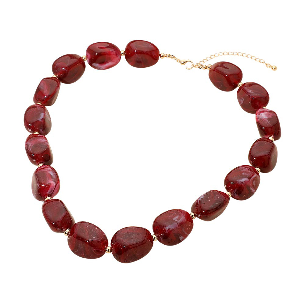 Chunky Marbled Resin Pebble Beaded Statement Necklace