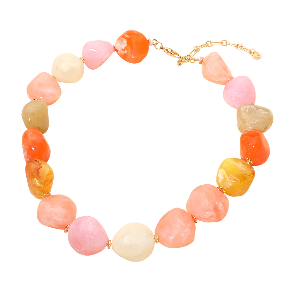 Chunky Marbled Resin Pebble Beaded Statement Necklace