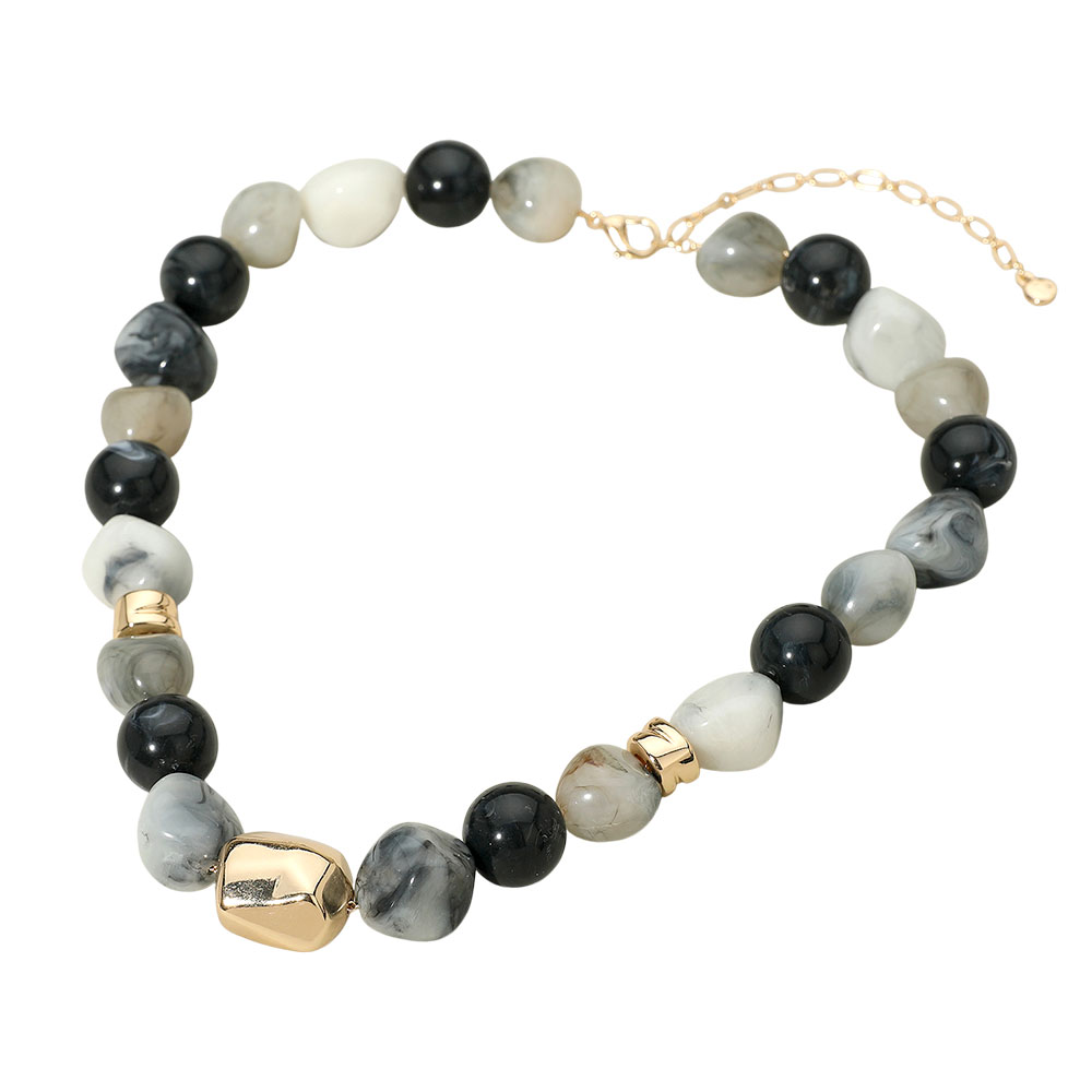 Details • Necklace Size : 16" + 3" L • Decor Size : 0.6" L • Make a bold style statement with this chunky beaded necklace featuring a mix of smooth and textured beads accented by polished details. Ideal for elevating casual and dressy looks, this striking piece brings modern sophistication and effortless charm to any outfit. • Lead and Nickel Compliant
