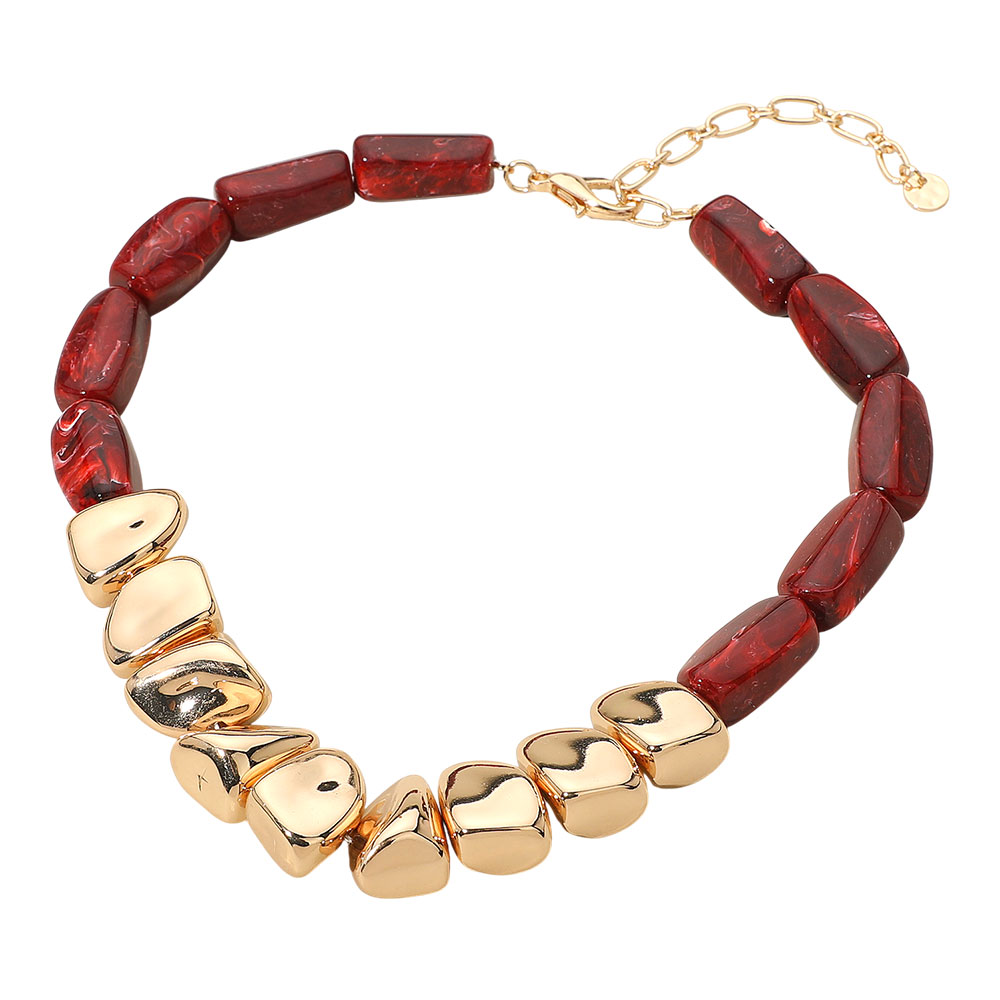 • Bold and modern chunky beaded necklace featuring polished metal accents paired with smooth marbled beads. Designed with an adjustable clasp for comfort, this necklace brings a touch of natural elegance and contemporary style to any jewelry collection.