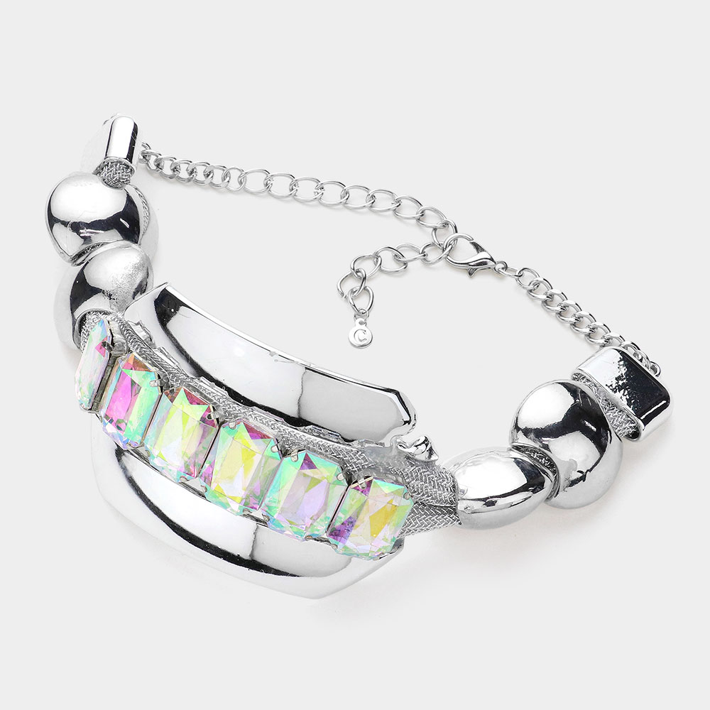 Chunky Rectangle Glass Stone Cluster Accented Pendant Pointed Statement Necklace